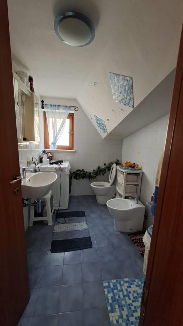 Il primo piano ospita due camere da letto, bagno e balcone, mentre il secondo piano è composto da una camera con balcone.