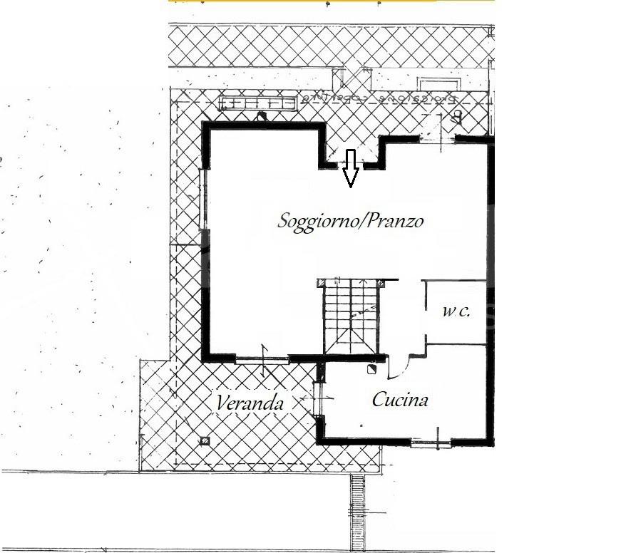 Piano terra: importante salone triplo con camino con opzione di ricavare una camera matrimoniale aggiuntiva o una sala da pranzo separata, ampia cucina abitabile con accesso diretto a un portico vivibile, bagno;