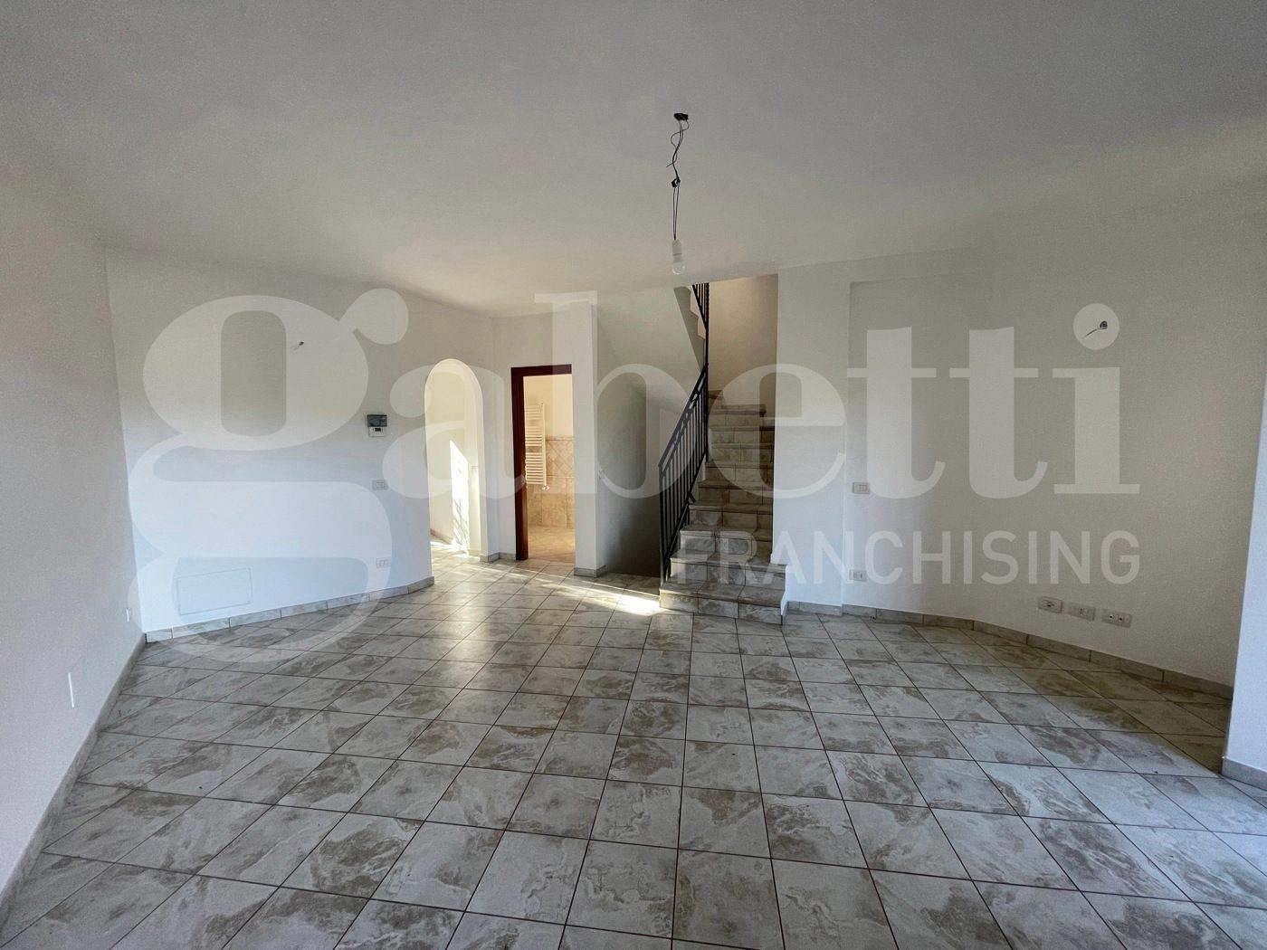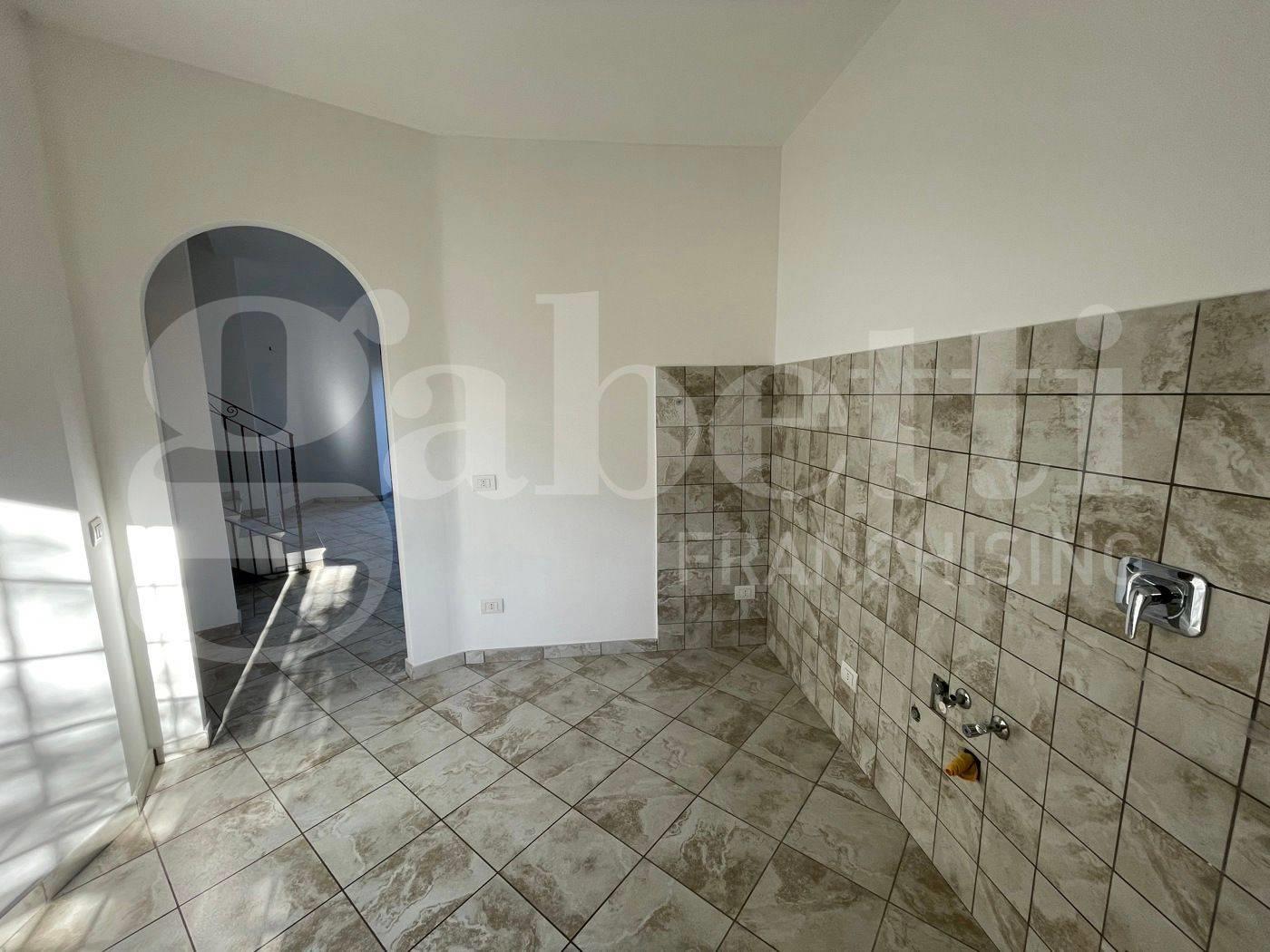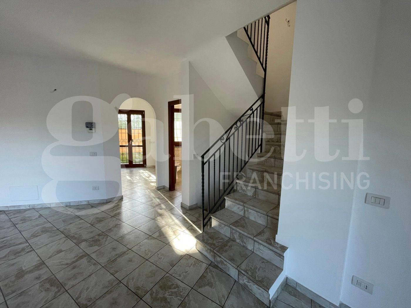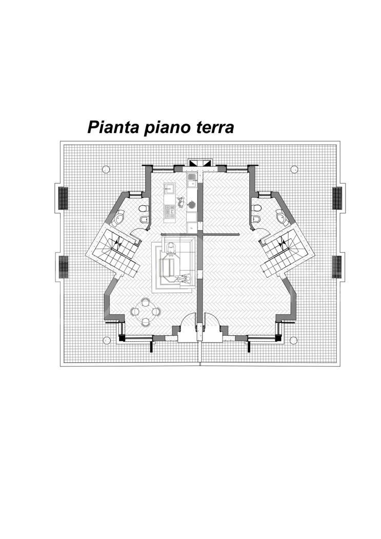 Il piano terra è composto da ingresso, salone doppio, cucina abitabile, bagno con finestra, patio e giardino a livello di circa 600 mq.