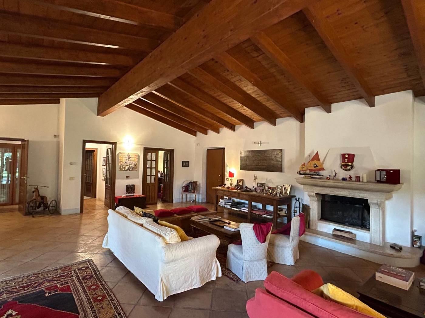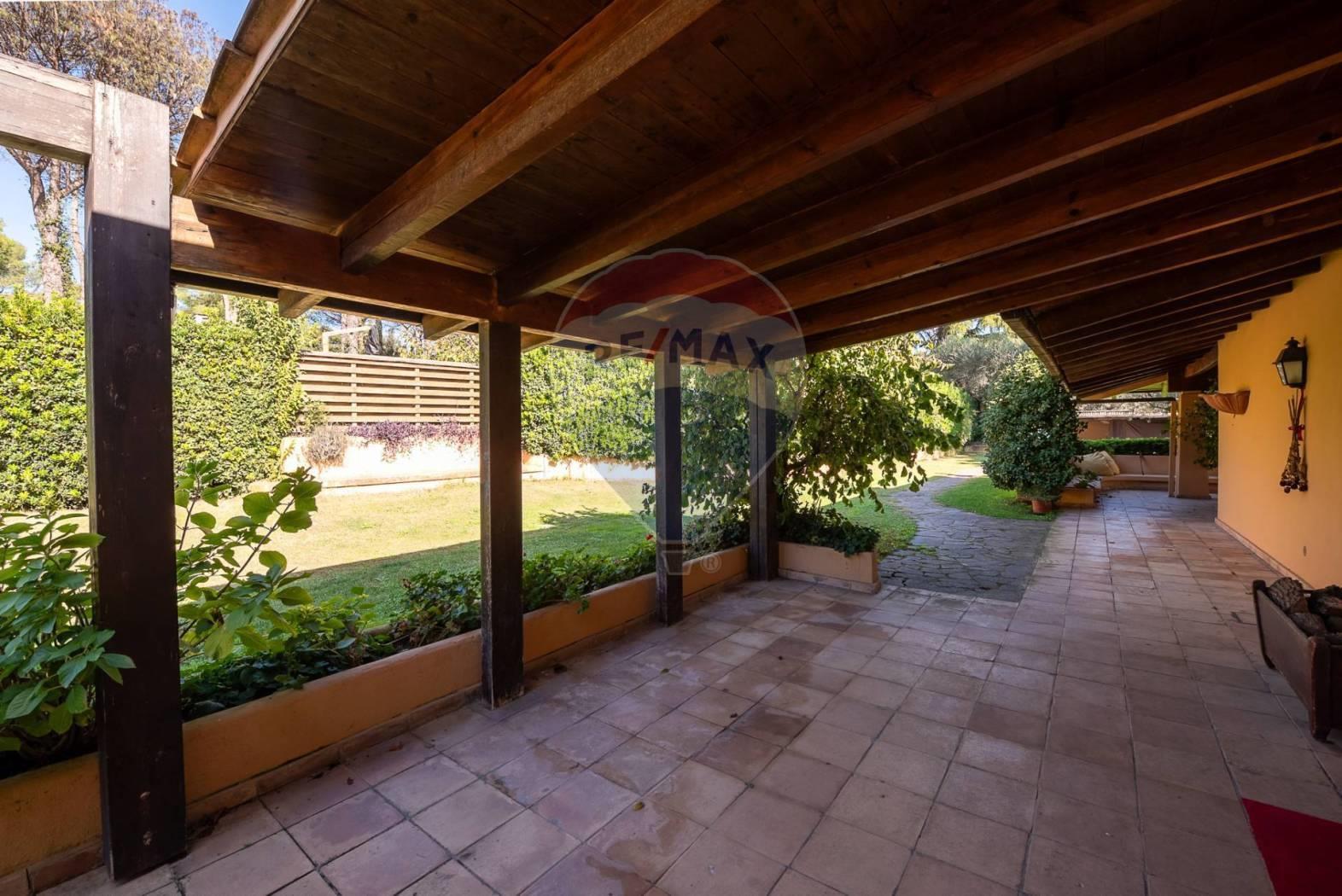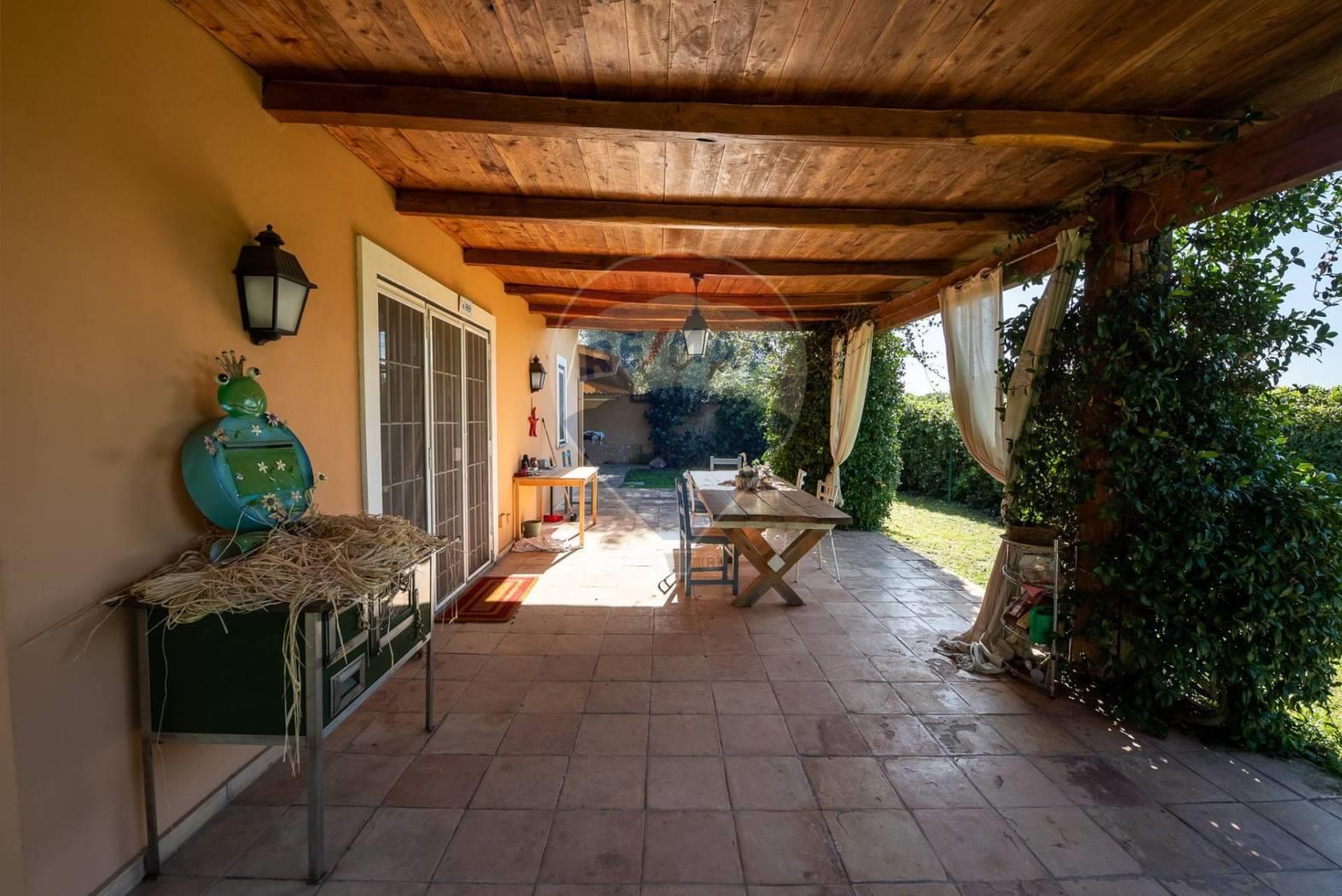 Il giardino, costituito da alberi ad alto fusto, ulivi, alberi da frutto e piante di vario tipo, circonda l'immobile; nella zona antistante è presente una struttura esterna in muratura con barbecue e forno, in quella retrostante sono presenti un'area gioco per bambini, una vasca idromassaggio da esterno, un lato della casa è pavimentato e ospita una tettoia spaziosa (50 mq coperti).