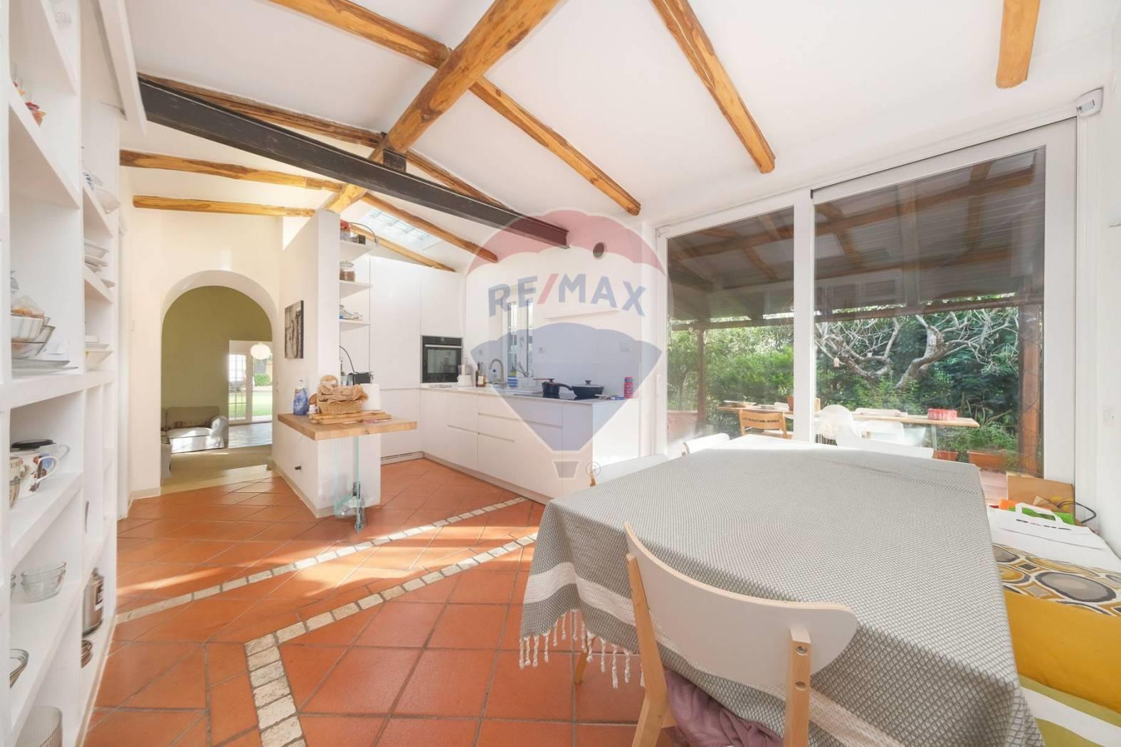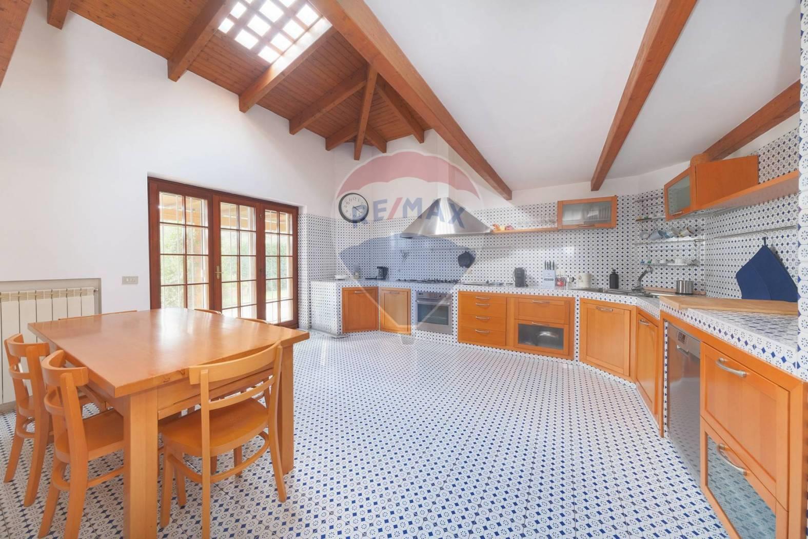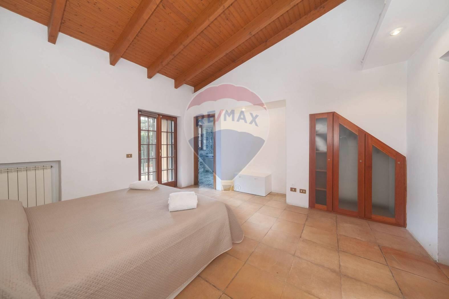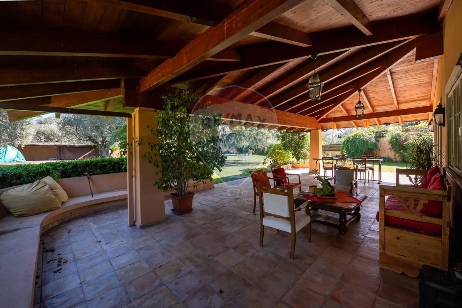 Il giardino, costituito da alberi ad alto fusto, ulivi, alberi da frutto e piante di vario tipo, circonda l'immobile; nella zona antistante è presente una struttura esterna in muratura con barbecue e forno, in quella retrostante sono presenti un'area gioco per bambini, una vasca idromassaggio da esterno, un lato della casa è pavimentato e ospita una tettoia spaziosa (50 mq coperti).
