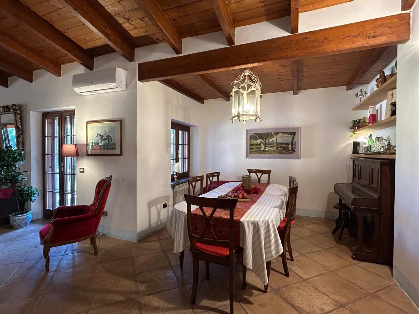 un comodo ingresso con vetrate e armadio a muro, salone con camino, attraverso due gradini si accede alla cucina abitabile e ai due bagni; la zona notte è costituita da una camere da letto matrimoniale con caminetto e una seconda camera da letto; un ripostiglio con accesso dall'esterno.