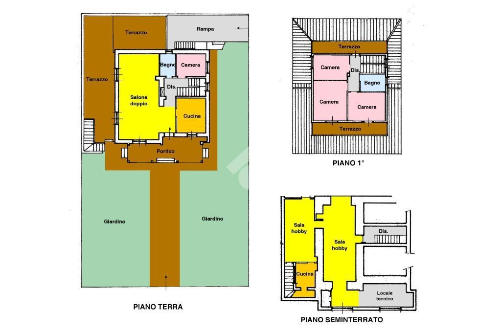 La villa si sviluppa su tre livelli ed è così composta: