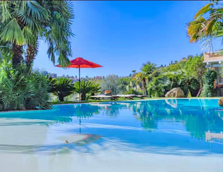 La piscina (90 mq) è privata, attiva da fine aprile a inizio ottobre, e dotata di ingresso digradante, lettini, ombrelloni e pergola relax.