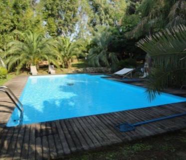 Il giardino è ampio e ben curato (3.000 mq), con spazi ideali per rilassarsi all’ombra, mangiare all’aperto o prendere il sole a bordo piscina.