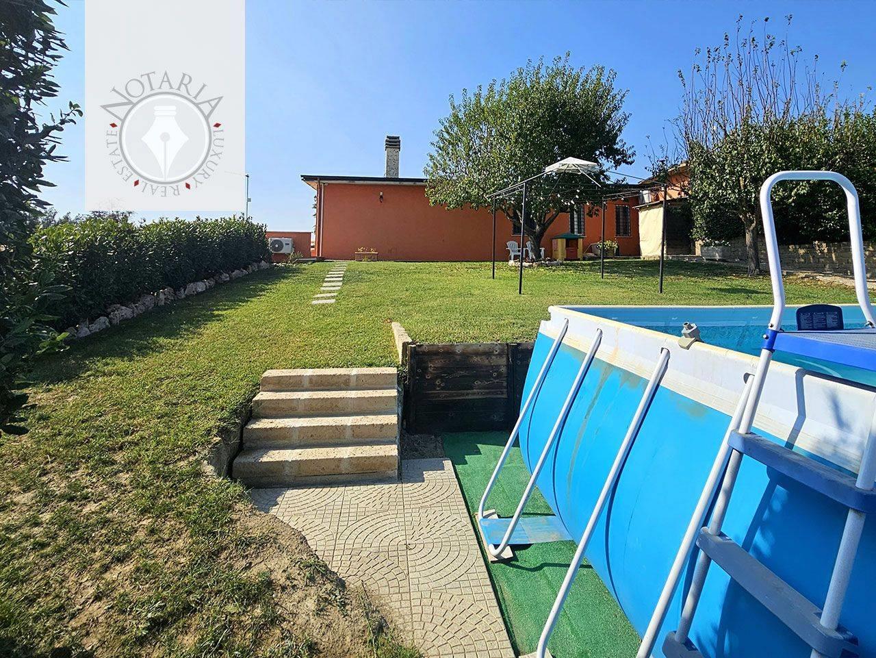 Ampia e luminosa villa angolare disposta su di un unico livello, con spaziosa terrazza panoramica e giardino privato con piscina. La villa si trova in un comprensorio dagli ampi spazi verdi curati.