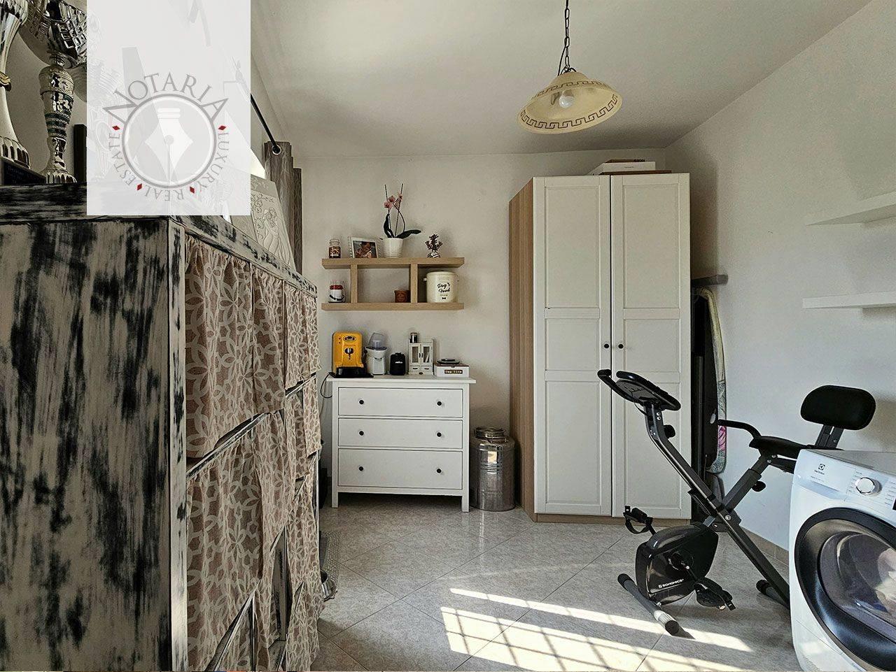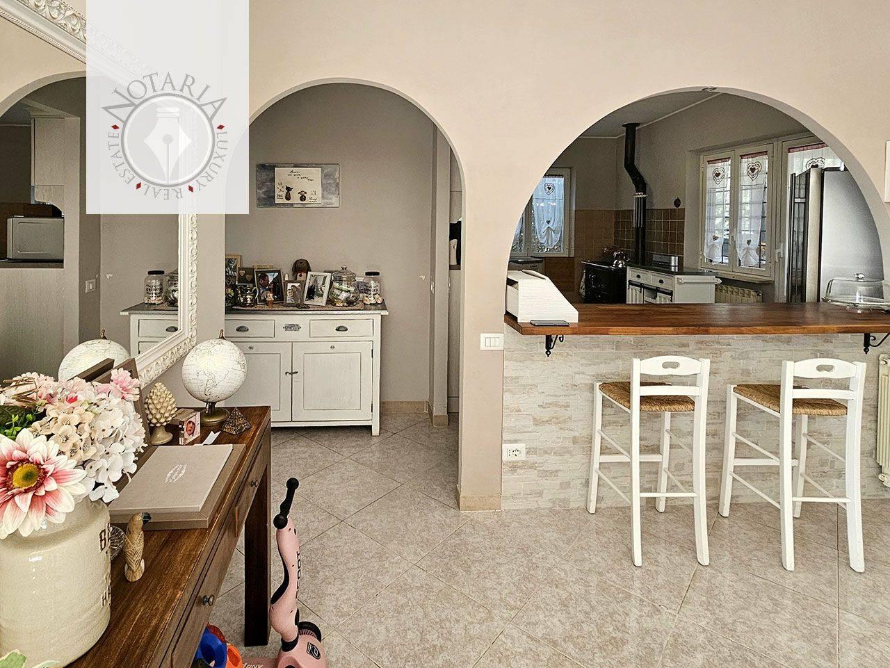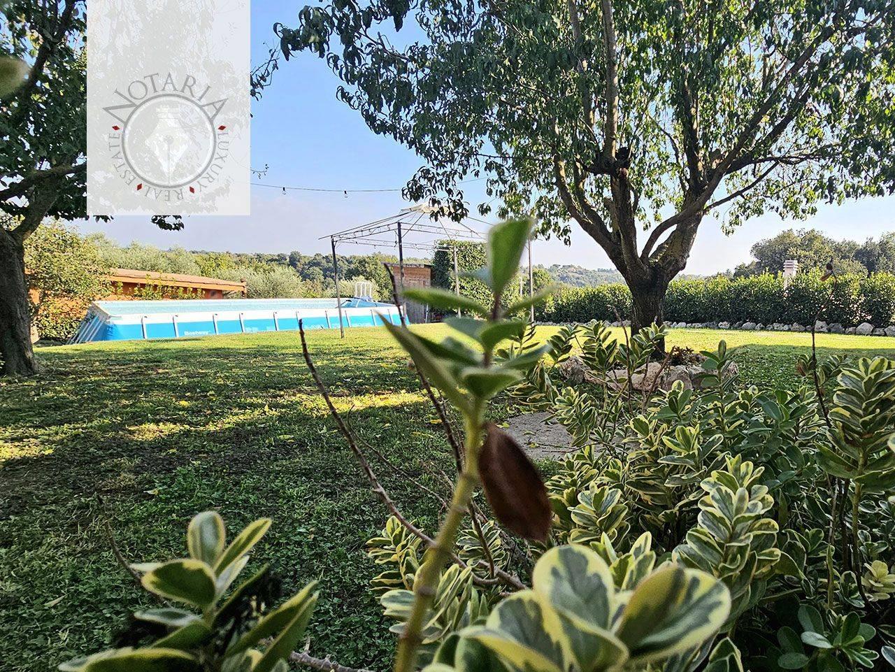 Si accede al comprensorio tramite un cancello elettrico che immette in un verde e curato giardino comune affiancato ad una comoda piazzetta dove poter posteggiare le auto. Di fronte l'accesso dell'immobile c'è uno spazio privato dedicato all'area parcheggio e zona barbecue (circa 48mq). L'ingresso della villetta ha a servizio una ampia corte recintata in legno (di circa 50 mq). Varcata la soglia d'ingresso si è subito al centro di questa grande e luminosa zona giorno dotata di tutti i confort. Gli spazi di questo moderno immobile (di circa 150 mq interni) sono stati sapientemente studiati e ottimizzati. La zona giorno è direttamente connessa alla grande cucina indipendente attraverso ampi archi che oltre a permettere il passaggio della luce garantiscono la convivialità sia in serate con amici che nella routin quotidiana. Quest'area è il fulcro della casa da cui si può accedere ad ogni ambiente. Attraverso un comodo disimpegno armonizzato nella planimetria si accede alla zona lavanderia e ad un bagno per gli ospiti. Dall'altro lato del salone invece,attraverso un ampio disimpegno con armadiature a muro, si può accedere alla zona notte con due grandi camere da letto con il proprio bagno en suite. La zona giorno immette direttamente anche nella grande terrazza panoramica (di circa 125mq) con affacci sul verde , esposta a SUD, che non aspetta altro di essere piantumata ed arredata. Dalla terrazza è possibile da un lato, attraverso un grazioso corridoio contornato dal verde, ritornare all'area barbecue e all’ingresso della villa e dall'altro raggiungere questo curato giardino privato (di circa 350 mq) con area piscina contornato da siepi che garantiscono una totale privacy.