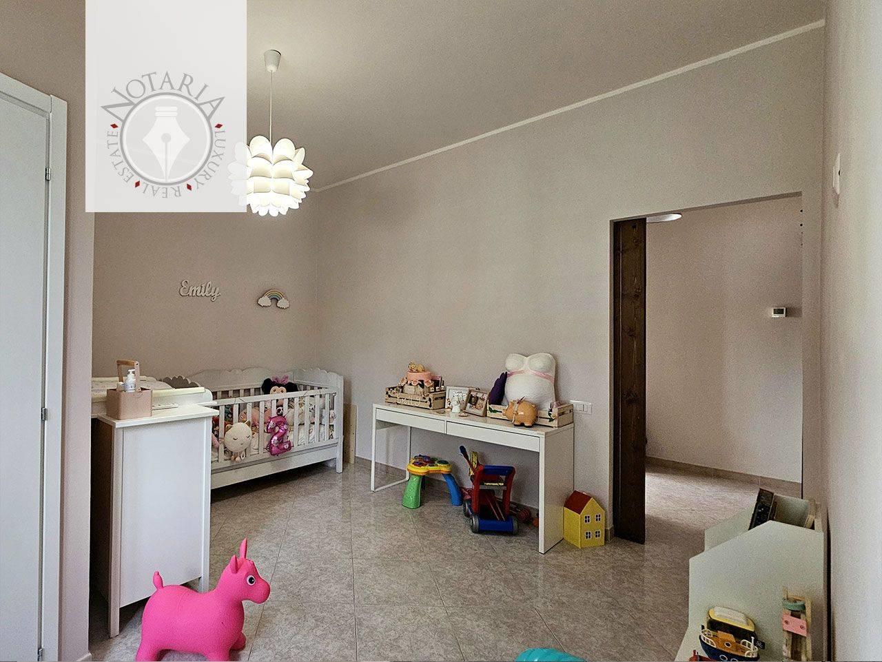 Ampia e luminosa villa angolare disposta su di un unico livello, con spaziosa terrazza panoramica e giardino privato con piscina. La villa si trova in un comprensorio dagli ampi spazi verdi curati.