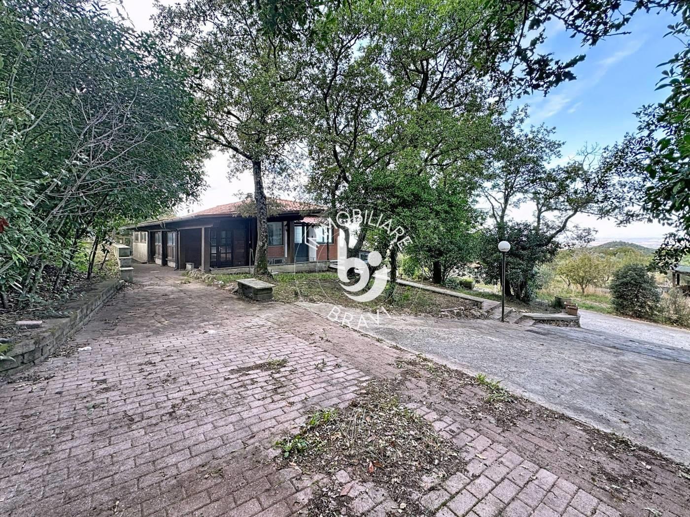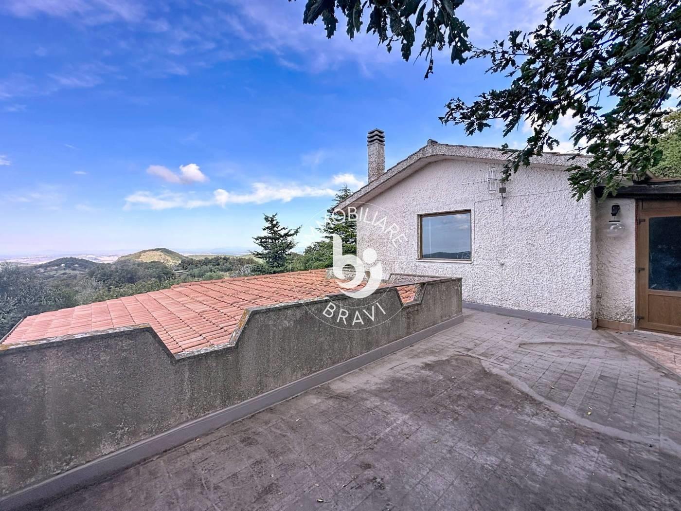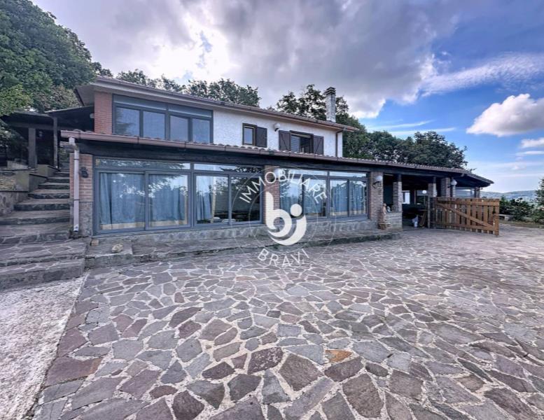 Immobiliare Bravi propone in vendita ad Allumiere, immersa nella tranquillità della campagna, splendida villa unifamiliare di circa 160 mq con VISTA MARE PANORAMICA e quasi 1 ettaro di terreno di proprietà. La proprietà, completamente recintata e accessibile sia da ingresso pedonale che carrabile, si sviluppa su due livelli non collegati internamente tra loro. Al piano terra si trovano un ampio portico, doppio ripostiglio, garage, di circa 51mq, con annessa area residenziale con cucina e bagno. Il primo piano, raggiungibile tramite doppia scala esterna, accoglie un ingresso, un luminoso soggiorno con cucina a vista e camino, una camera da letto, un bagno e un portico. Completa il livello un grande terrazzo con vista panoramica sul mare, ideale per momenti di relax all’aperto. Il terreno circostante ospita una casetta categoria catastale A/4 e una tettoia, oltre a numerosi alberi da frutto e ulivi. L’immobile è termoautonomo e rappresenta la soluzione ideale per chi desidera vivere nella natura senza rinunciare alla comodità e alla bellezza di un panorama unico.