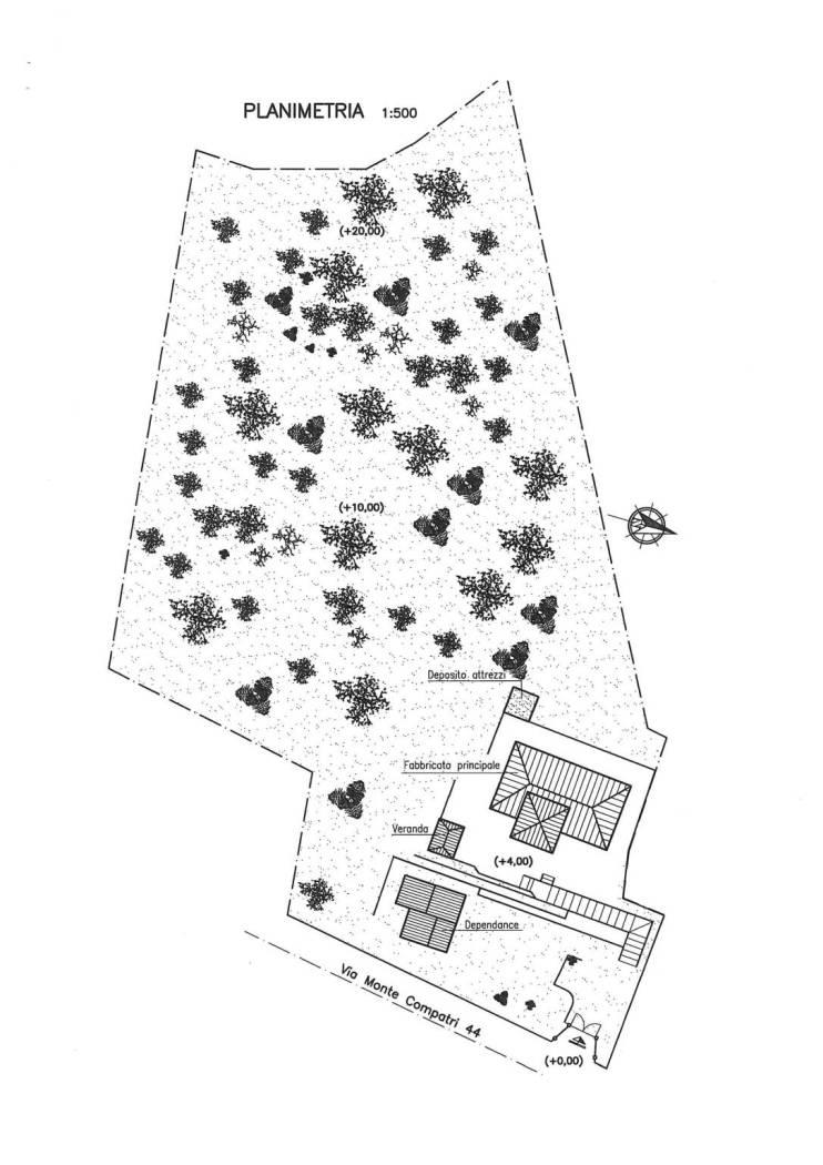 - Parco di circa mq 5.500, il tutto recintato che comprende il bosco di castagni, ulivi, piante da frutta e pini che si estende su tutto il lotto e con la possibilità di posteggiare all'ingresso 3/4 posti auto.