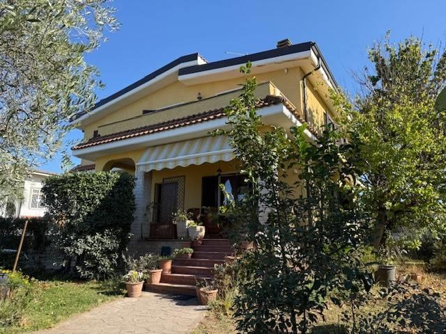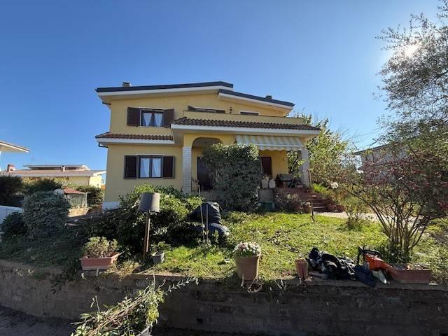 Casamania Immobiliare propone in vendita una splendida villa unifamiliare di 267 mq commerciali, situata in una posizione privilegiata con quadrupla esposizione. La casa si sviluppa su tre livelli, offrendo ampi spazi e comfort per tutta la famiglia. Al piano terra, un salone triplo con termo camino accoglie gli ospiti, affiancato da una cucina funzionale, una camera e un bagno. Un ampio portico invita a godere di momenti di relax all'aria aperta.