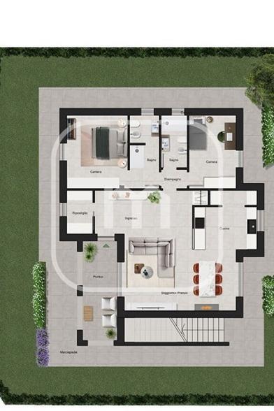 All’esterno, la proprietà vanta circa 350 mq di spazi privati, tra cui un ampio portico, terrazze vivibili, una pergola con posti auto coperti e un giardino esclusivo, ideale per momenti di relax e convivialità all’aperto.