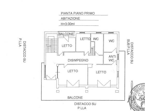 - piano primo, residenziale, di circa 200 mq: disimpegno; lungo corridoio dal quale si aprono le porte delle stanze, arricchito da numerosi armadi a muro; due camere da letto matrimoniali, una delle quali dotata di antibagno e bagno privati, ed entrambe con accesso al terrazzo panoramico sulle colline circostanti e sul litorale laziale; servizio finestrato; camera da letto; camera da letto con balcone privato;