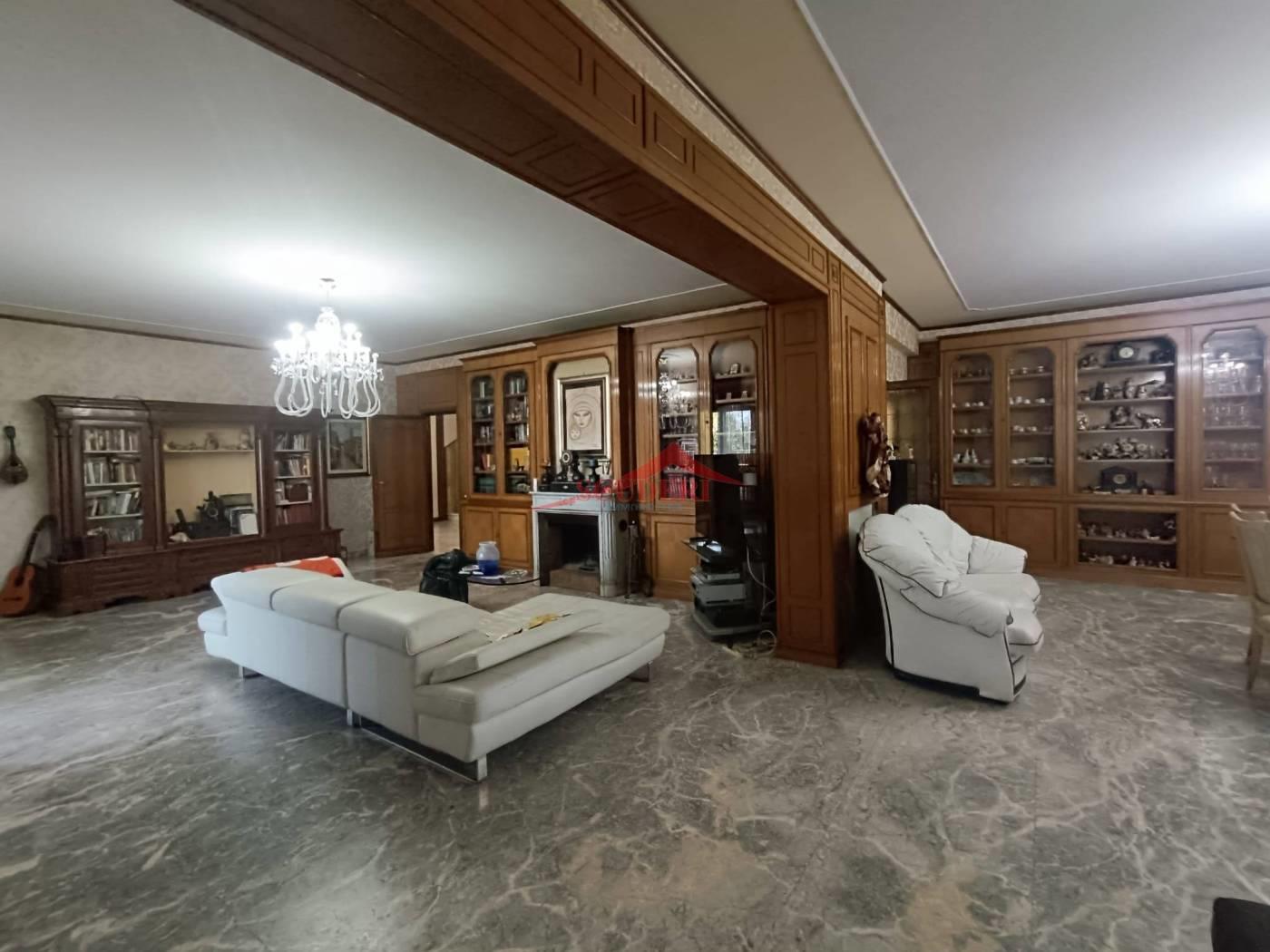 - piano terra, residenziale, di circa 200 mq: ingresso su un ampio disimpegno con prestigiosa scala in marmo che collega ai piani superiori e a quello inferiore; salone, doppio e di rappresentanza, con camino e particolarmente luminoso grazie alla presenza di due porte finestre che conducono al giardino; cucina abitabile; secondo disimpegno che apre le porte ai due servizi finestrati ed alla camera da letto;