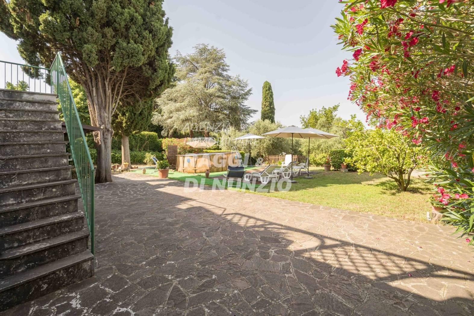 A Frascati, nella tranquilla e prestigiosa Via di Salè, proponiamo in vendita una villa unifamiliare di ampia metratura, suddivisa in due unità abitative completamente indipendenti, ideale per due nuclei familiari o per chi desidera coniugare abitazione e spazi professionali in un’unica soluzione. L'accesso alla proprietà avviene inizialmente tramite un cancello condiviso con un'altra abitazione, per poi proseguire fino al secondo ingresso, che è privato. L'immobile si sviluppa su tre livelli con accesso ai piani da scala esterna e non collegati internamente, per un totale di circa 380 mq coperti, circondata da un giardino privato che garantisce privacy e vivibilità all’aperto. L’abitazione principale si trova al piano terra rialzato e si estende per circa 170 mq. L’ingresso conduce a un elegante salone doppio con camino, luminoso e accogliente, con accesso diretto a una terrazza panoramica di 25 mq, perfetta per pranzi all’aperto o momenti di relax. La zona giorno è completata da un ampio studio, una cucina abitabile, tre camere da letto e due bagni finestrati. Gli ambienti sono ben distribuiti e godono di ottima esposizione. Al piano seminterrato, in parte fuori terra, si sviluppa un’ampia zona accessoria di ulteriori 170 mq, composta da una spaziosa cantina, una grande autorimessa e locali di servizio, ideali per soddisfare ogni esigenza di spazio, deposito o attività ricreative. Al piano primo, con accesso indipendente da scala esterna, si trova un appartamento autonomo di circa 40 mq catastali, composto da un unico grande ambiente open space, cucinotto, bagno, ripostiglio e una terrazza privata di 25 mq. Adiacente all’appartamento è presente un’ampia zona sottotetto ad uso ripostiglio, che amplia ulteriormente le potenzialità dell’immobile. La villa si presenta come una soluzione versatile e funzionale, perfetta per chi cerca ampi spazi, indipendenza tra le unità abitative e una posizione riservata ma comoda ai servizi. La zona è ben collegata con il centro di Frascati e con Roma, rendendo questa proprietà ideale sia come abitazione principale che come investimento.