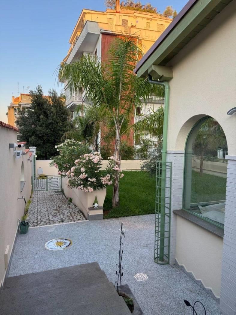 ResidenzeRe propone in vendita nel quartiere Fleming, e più precisamente in Via Andrea Giardina, la vendita di una villa unifamiliare finemente ristrutturata con materiali di pregio. L’appartamento al suo interno si presenta in ottimo stato manutentivo. Attualmente la proprietà risulta così composta: 3 ingressi su strada di cui 2 carrabili e 1 pedonale con ingresso alla villa dove troviamo al piano terra ampio soggiorno triplo con accesso al giardino di proprietà, cucina indipendente a vista completamente arredata, 2 camere da letto padronali con bagno, spogliatoio e cabina armadio. Salendo la scala dal soggiorno, si accede alla zona rialzata con affaccio sul soggiorno dove è presente la sala biliardo; oltre alla master suite con bagno en suite. Dalla cucina si accede tramite la scala a una ampia zona di servizi dotata di lavanderia camera e bagno di servizio. La proprietà comprende un giardino esterno perimetrale privato di 350mq circa dove si trova la piscina contro corrente a nuoto controllato, una zona barbecue, una zona verde oltre alla presenza di 4 posti auto con ingresso indipendente. Elenco dotazioni: Impianto fotovoltaico a pannelli solari da 16Kw sul tetto Riscaldamento elettrico a pavimento 2 Pompe di calore Daikin Full electric da 15kw Pacco batteria per accumulo da 30kw trifase 2 colonnine Areti per ricarica veloce automobile elettrica Deumidificatori in zona giorno e zona notte Radiatore Steel Retro supplementari nei bagni Fancoil Idealclima Glass Impianto elettrico nuovo e certificato Parquet in Rovere disegno Esagono Cucina nuova completa Scavolini Mod. Mia e cappa Elica 22 Finestre con infissi nuovi, inferriate e portone blindati Cancello ingresso Box con cancello Fangate Piscina controcorrente Mod. Riccione Aspirapolvere a scomparsa iFlex Impianto Solatube Impianto di allarme e videosorveglianza perimetrale Videocitofono Il prezzo di richiesta è di 3.000.000,00 Per maggiori informazioni potete contattare il 379 1664173 e/o 366 8150915, altrimenti inviare una e-mail a info@residenzere.com. I dati si intendono corretti ma non garantiti, l’annuncio non costituisce, in nessun caso, documento contrattuale. Se l’immobile è di suo gradimento e per procedere all’acquisto deve prima vendere, siamo a disposizione per una valutazione gratuita del suo appartamento e per seguirla in ogni fase della vendita. In un’ottica di crescita e potenziamento del team, la nostra agenzia con ufficio in zona Roma Nord (Flaminio) è alla ricerca di consulenti immobiliari motivati e con comprovata esperienza, da inserire in collaborazione per attività di vendita/acquisizione. Se interessati, inviare un contatto via mail a info@residenzere.com oppure chiamare il 366 8150915.