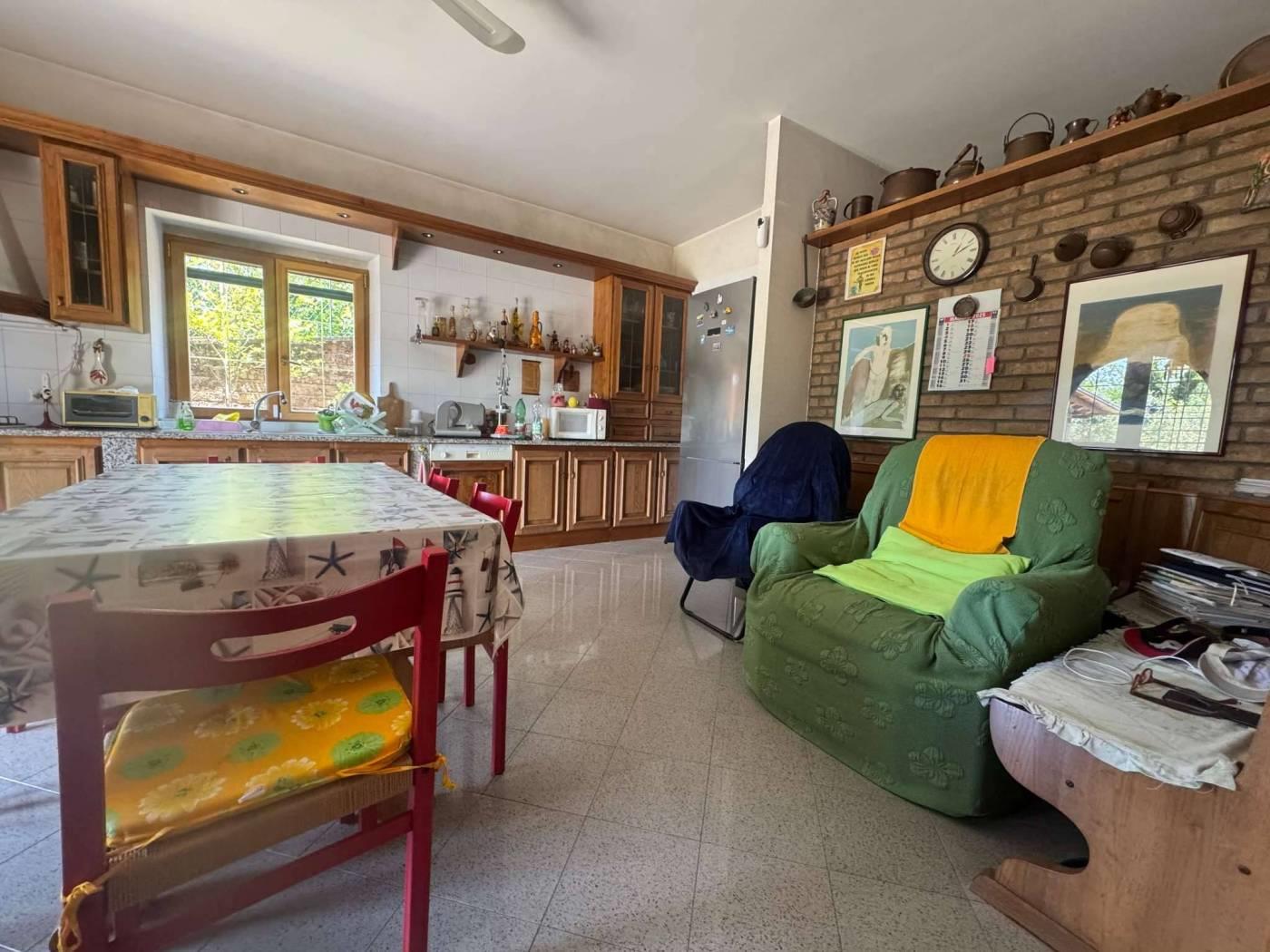 La villa si sviluppa su due piani ed e' cosi' composta : al piano terra da un ampio salone doppio con camino, cucina abitabile , bagno, lavanderia, cantina , al piano primo quattro camere disimpegno doppi servizi terrazzo, completano la proprieta' una graziosa dependance di circa 50 mq. composta da soggiorno con angolo cottura camera bagno e portico, due box auto per un totale di circa 50 mq. il forno con barbecue ed il terreno di circa 2.500 mq. con piante di alto fusto e da frutta: arance olivi mandarini ciliegi e tanto altro. La proprieta' e' dotata di due ingressi carrabili e due pedonali ,si presta ad essere divisa in due o tre appartamenti ; lo stato di conservazione e' ottimo infissi in doppio vetro taglio termico alluminio/legno,facciata in ottime condizioni,tetto coibentato, pavimenti in cotto e ceramica , impianti a norma . euro 430.000,00. Per informazioni o per fissare una visita contattare Rosario Incarbone 3927650804