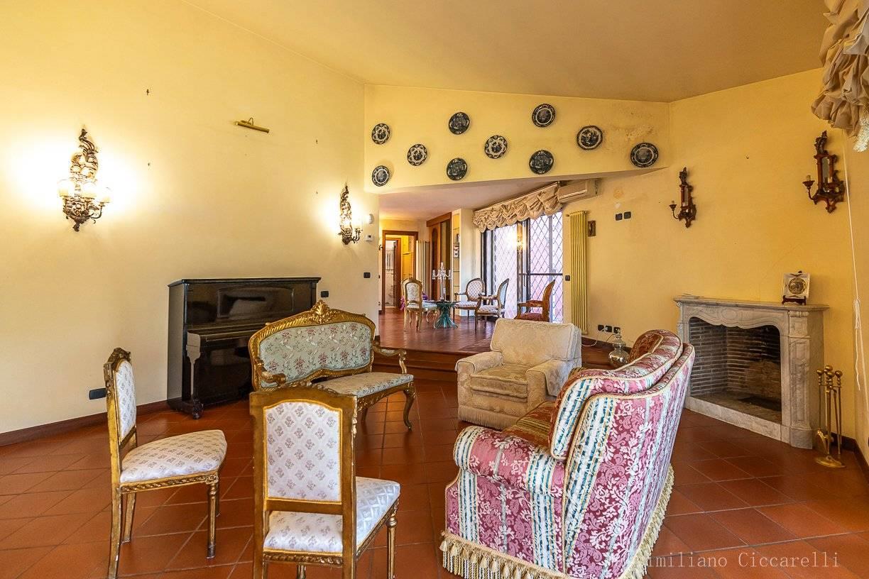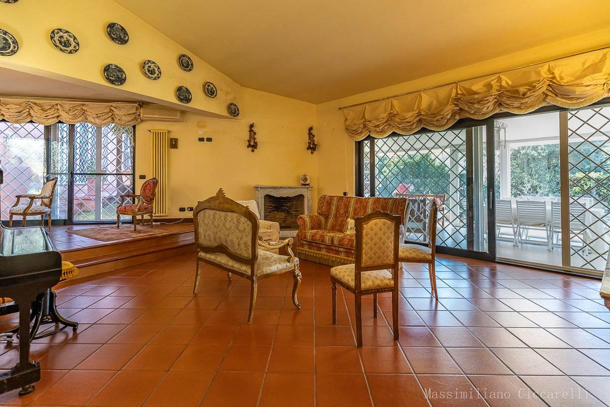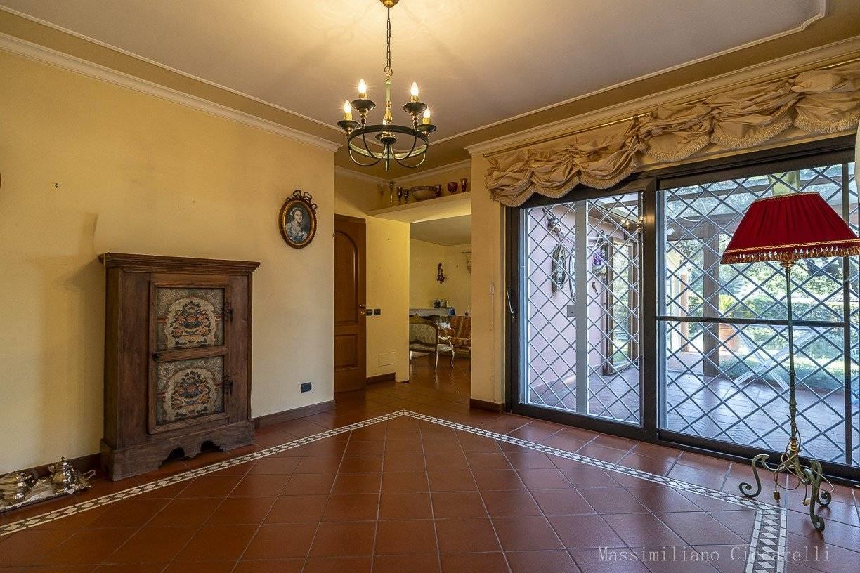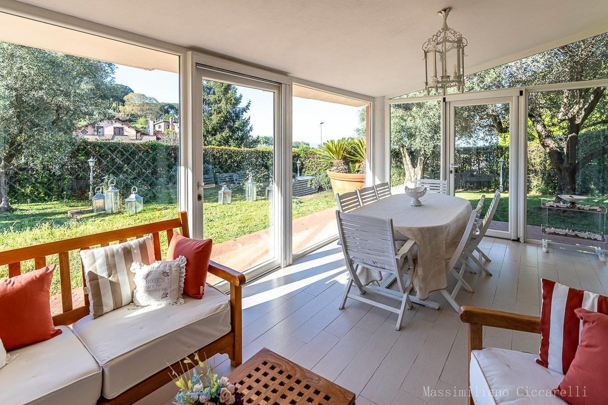Nuova Crg Immobiliare propone in vendita villa di ampia metratura in zona residenziale situata a poca distanza dal centro, precisamente in Via Mastro di Casa, Albano Laziale. La villa disposta su tre livelli oltre giardino di proprietà di 800 mq ca è composta al piano terra da ingresso, salone doppio con camino, cucina abitabile con ulteriore camino, sala da pranzo, camera, bagno e portico a livello. Il primo piano ospita una camera padronale con cabina armadio e bagno dotato di vasca, camera singola con uscita su giardino, ulteriore bagno. nel piano seminterrato è presente un ambiente open space dotato di salone con camino, angolo cottura, due ripostigli e bagno. Completano la proprietà box auto triplo di 50 mq ca, cantina e locali tecnici. L'immobile si presenta in buone condizioni e offre ambienti luminosi e panoramici dotata di pavimento in cotto nella zona giorno e parquet nella zona notte. Per maggiori informazioni non esitare a contattarci allo 0693011093 - 0694522653 -segreteria@crgimmobile.com ti aspettiamo in via G. Rossini 8/A Albano Laziale (RM) dal LUN/VEN 9-13/15.30-19.30 SABATO 9-13.