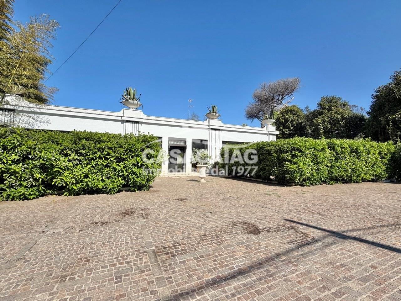 All'entrata nel giardino, ampio spazio per diversi posti auto e per lo scenografico accesso alla villa; la parte posteriore, più riservata, è invece uno splendido spazio verde con armoniosa alternanza di prato, fiori ed essenze di vario tipo.