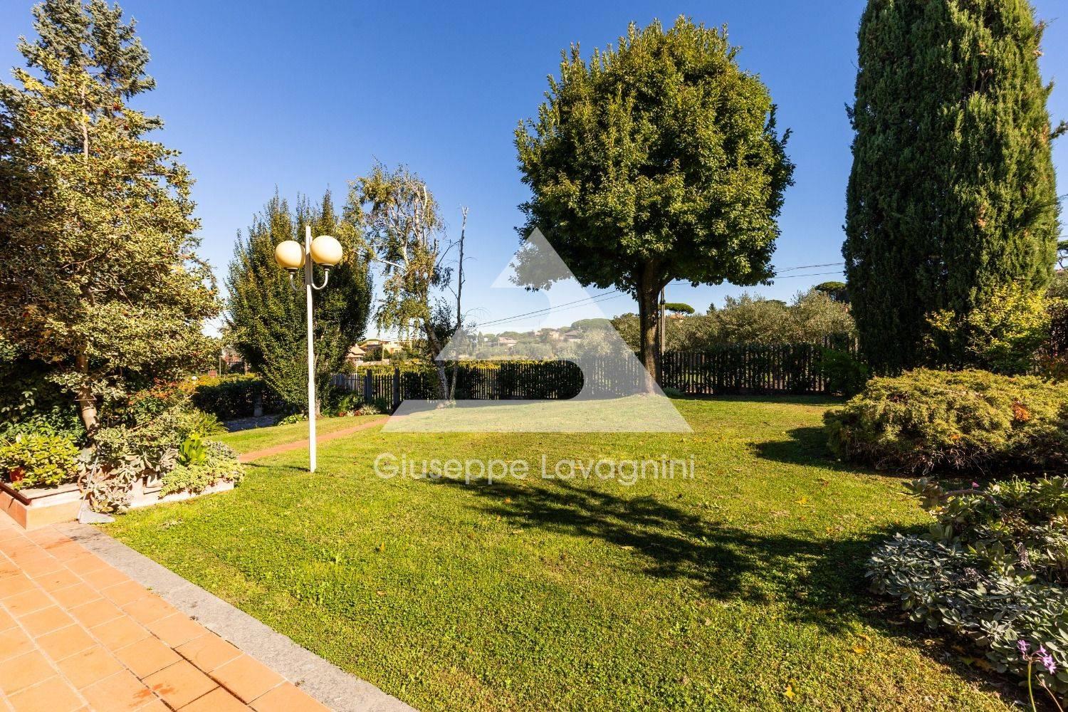 La villa è circondata da un ampio giardino privato di circa 2.000 mq, perfettamente curato e in parte pavimentato, con area parcheggio per più auto.