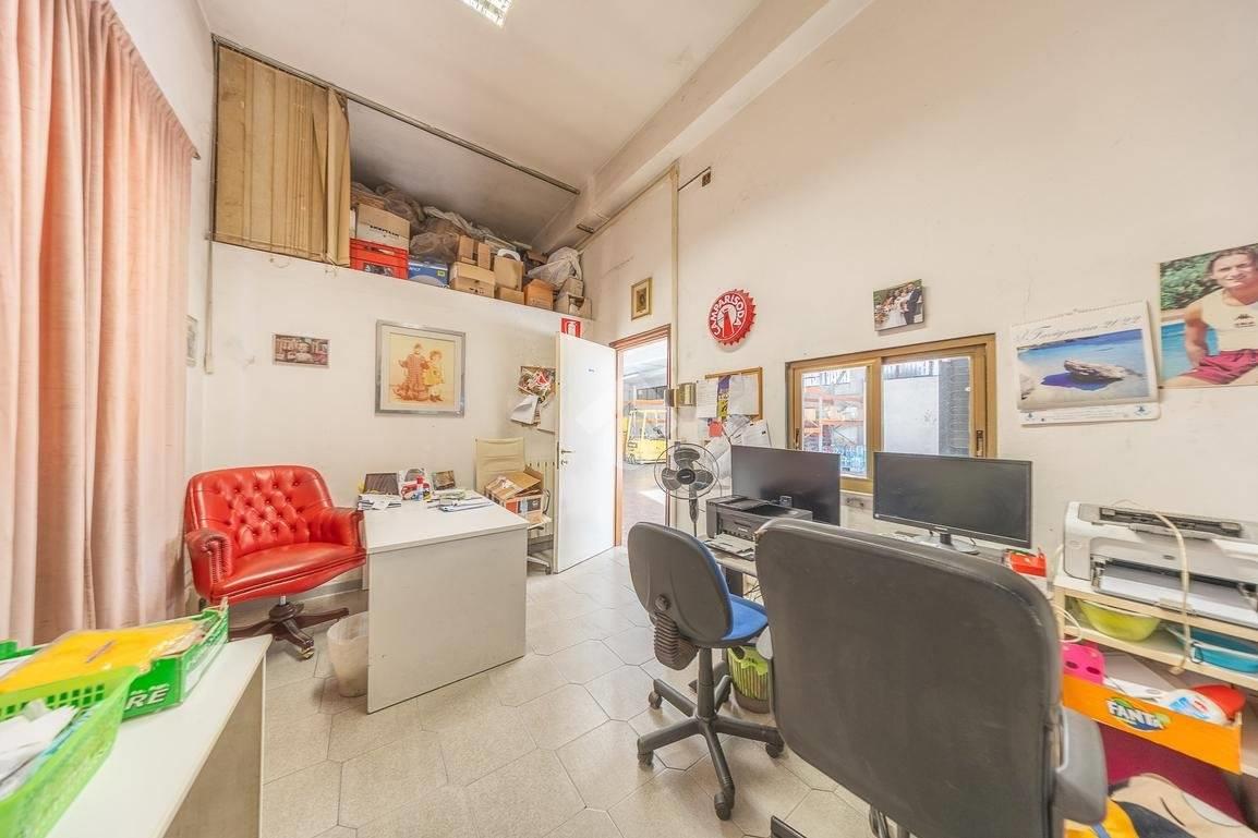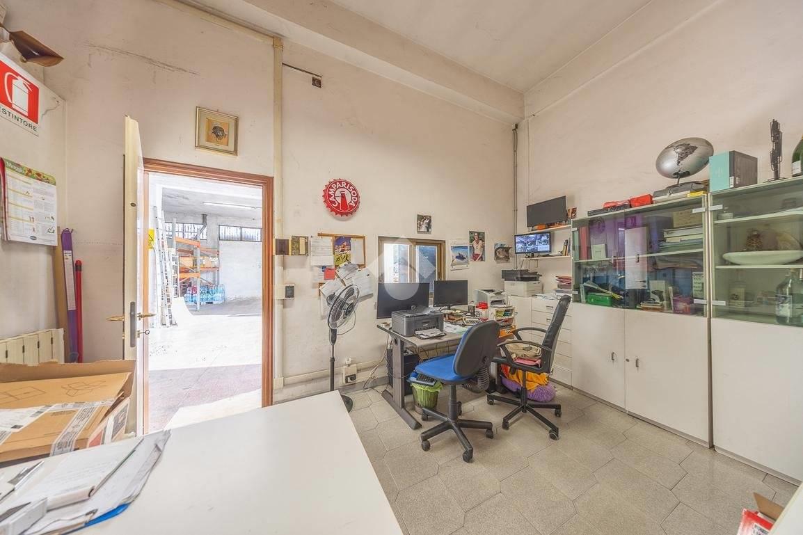 L'immobile al piano terra presenta un ampio ambiente destinato a deposito di circa 800 mq distribuiti su un unico livello con annessa area di manovra totalmente pavimentata. Il piano dispone inoltre di un ufficio e di un pratico bagno.
