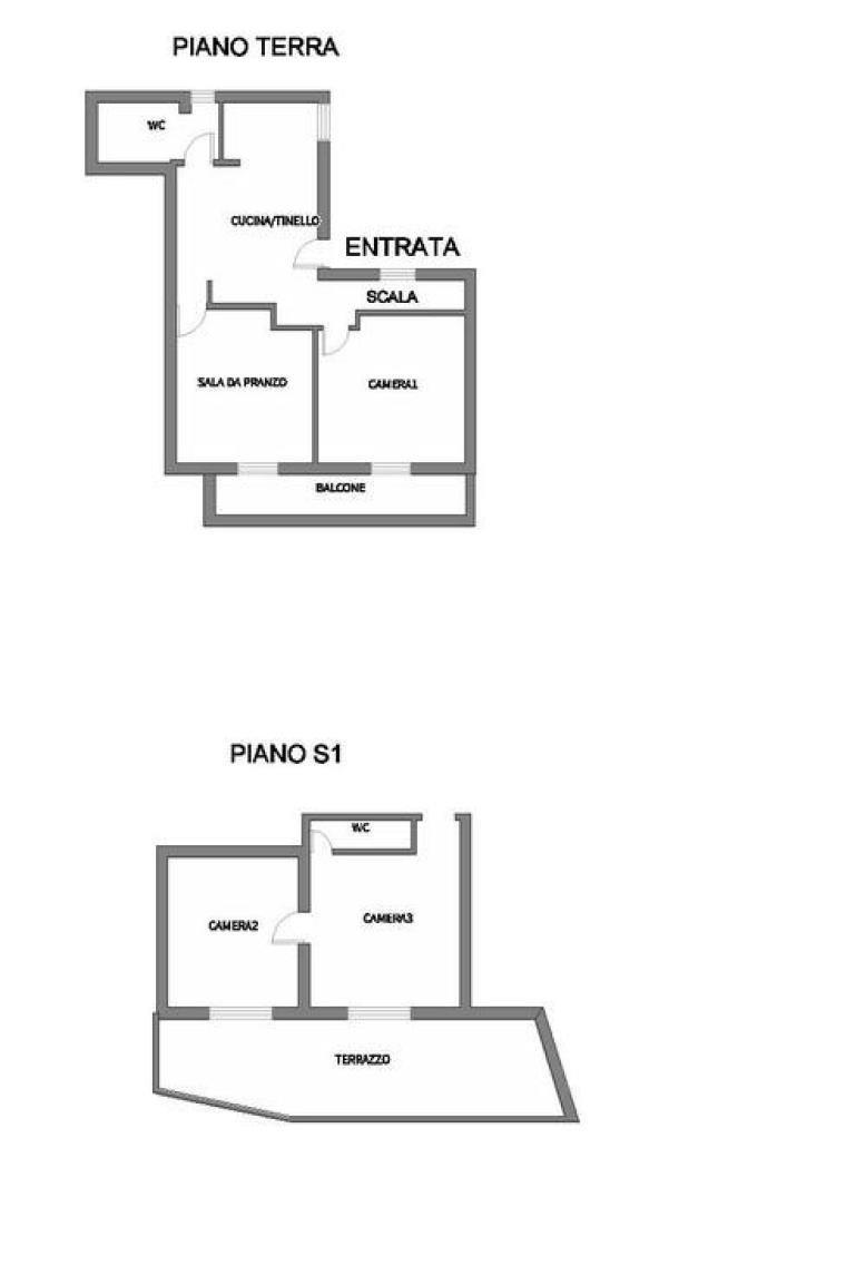 - al piano terra è situata la cucina/tinello con camino, due camere ampie, il bagno con vasca ed un balcone;
