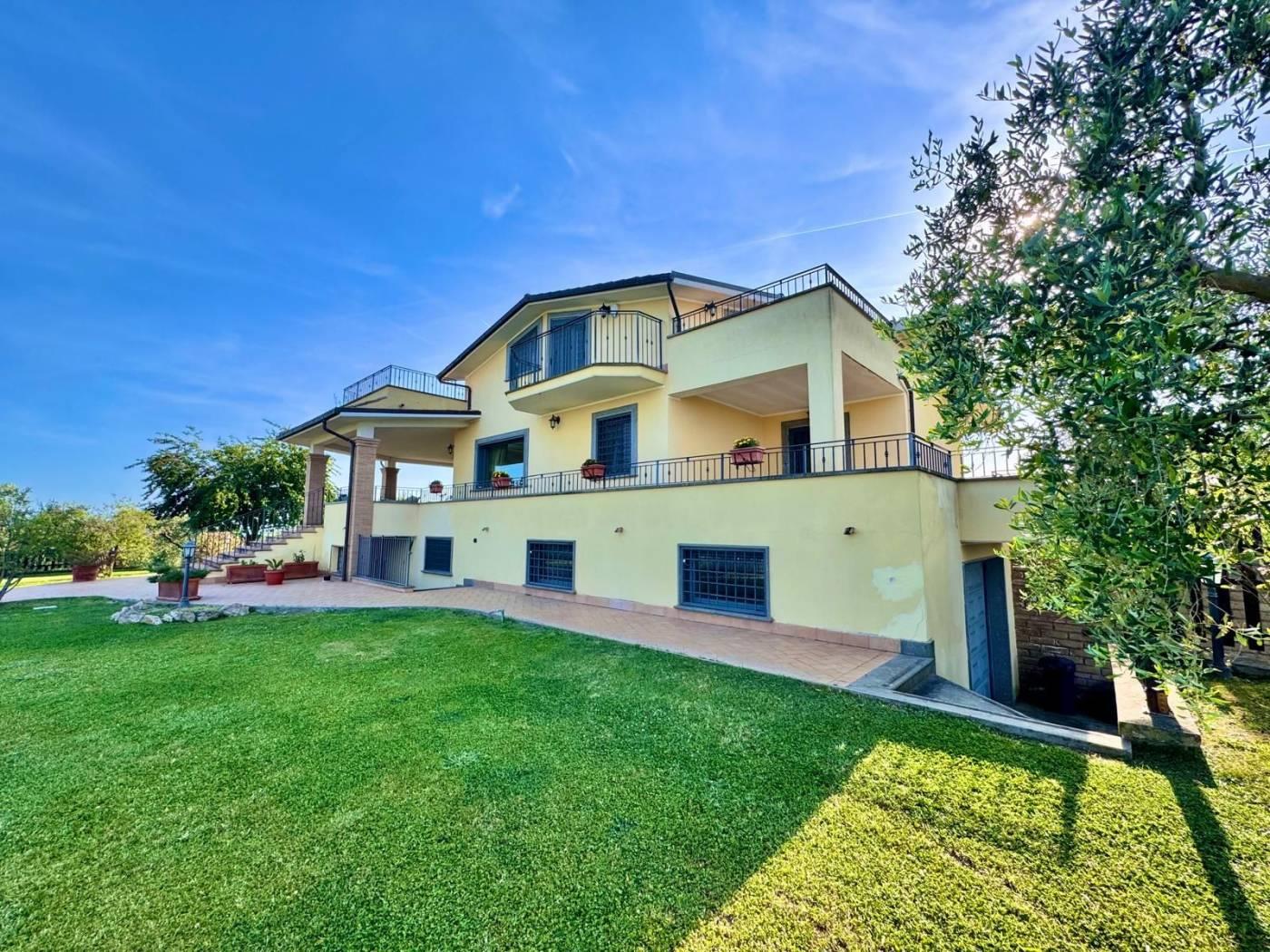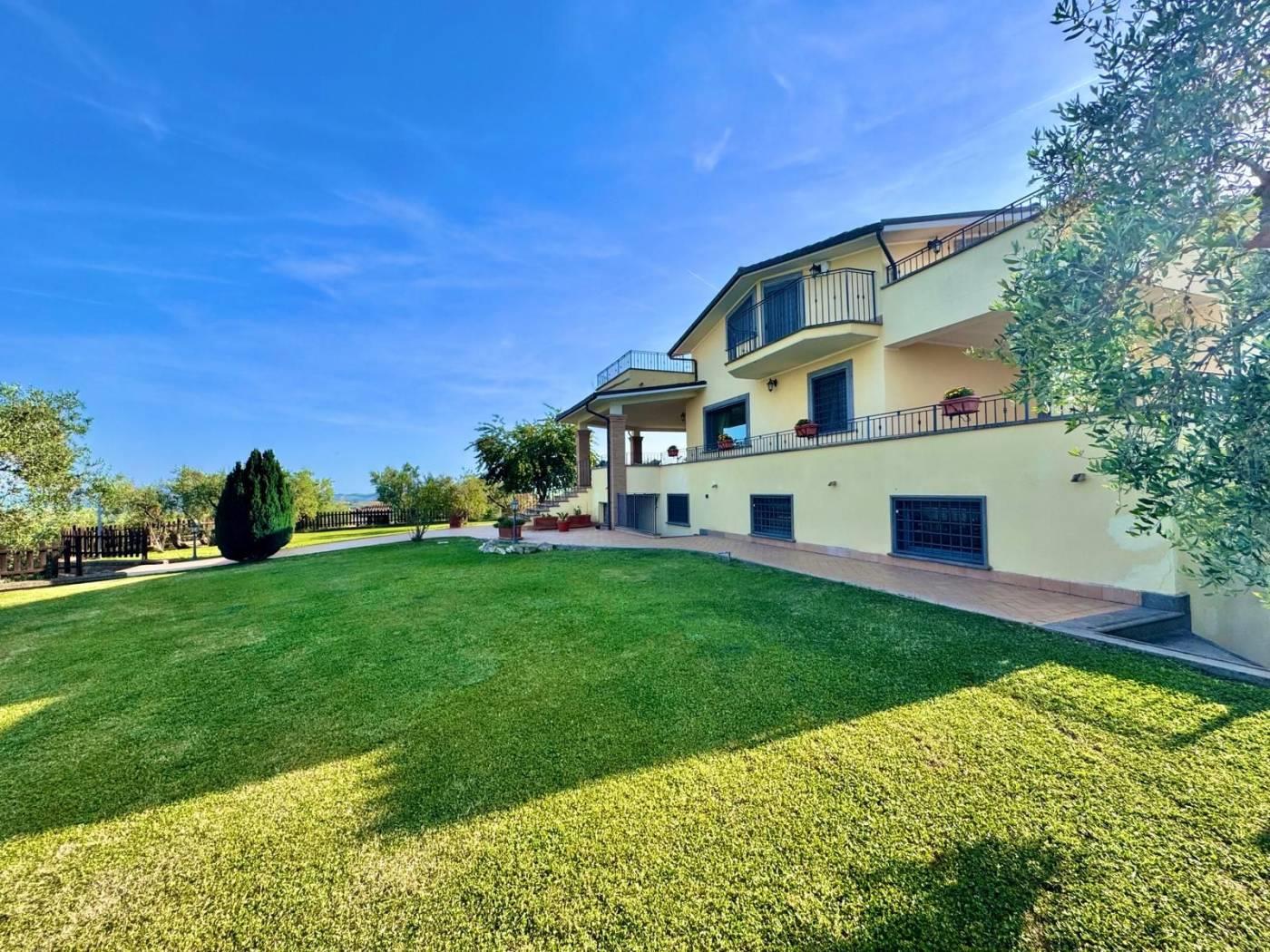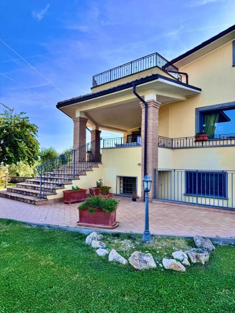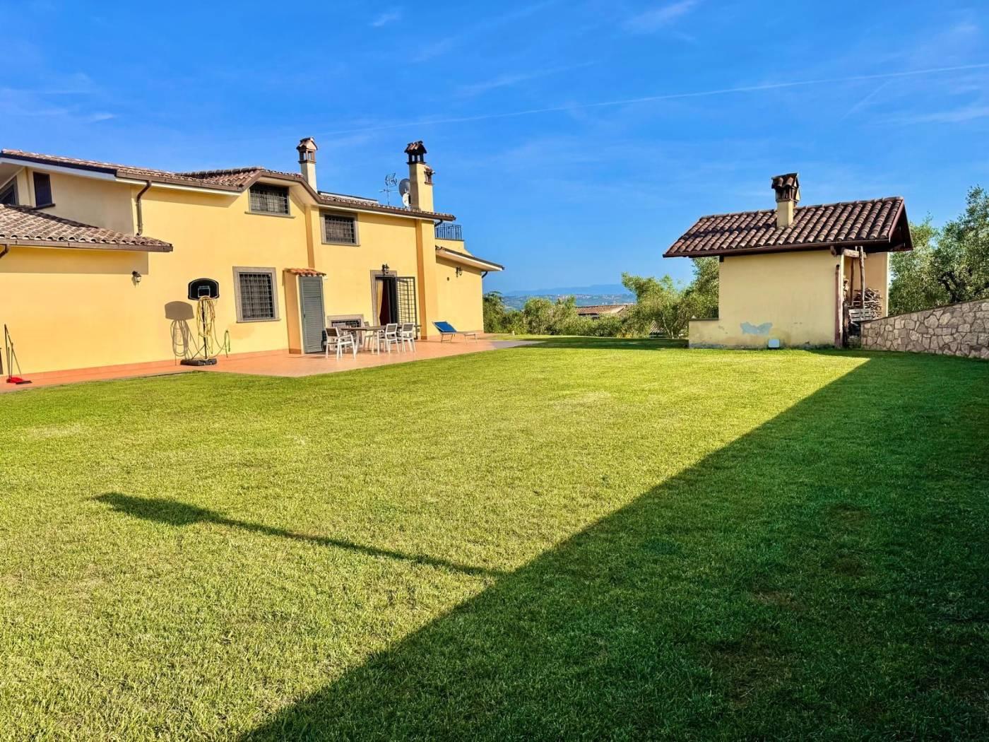 Fiano Romano, e più precisamente in Via del Sassone, in posizione dominante e panoramica, disponiamo di un'esclusiva VILLA UNIFAMILIARE circondata da un curatissimo giardino di mq 1000 oltre all'uliveto di mq 10.000 che vanta ben 200 piante. La villa si sviluppa su tre piani così ripartiti: al piano terra troviamo il salone doppio, la cucina abitabile con camino, una camera da letto padronale con bagno e cabina armadio ed il secondo bagno; con una comoda scala in legno massello si accede al primo piano dove troviamo quattro camere, un bagno e due terrazzi e al piano seminterrato, dove c'è una sala hobby di mq 120 con angolo cottura, camino, lavanderia e bagno. Dalla sala hobby si accede al box di mq 100 che ospita comodamente 4 macchine. La villa è facilmente divisibile per due unità familiari avendo il piano seminterrato tutti gli impianti autonomi ed indipendenti. L'immobile è stato realizzato nel 2010 con pannelli solari con boiler di accumulo, termocamino per il funzionamento dei termosifoni oltre all'impianto autonomo con caldaia, finestre doppio vetro legno/alluminio, pavimentazione in cotto e parquet da 1,5 cm., allarme con videosorveglianza e sulla parte del giardino fronte cucina/salone c'è una deliziosa casetta con forno a legna e barbecue e retrostante legnaia.