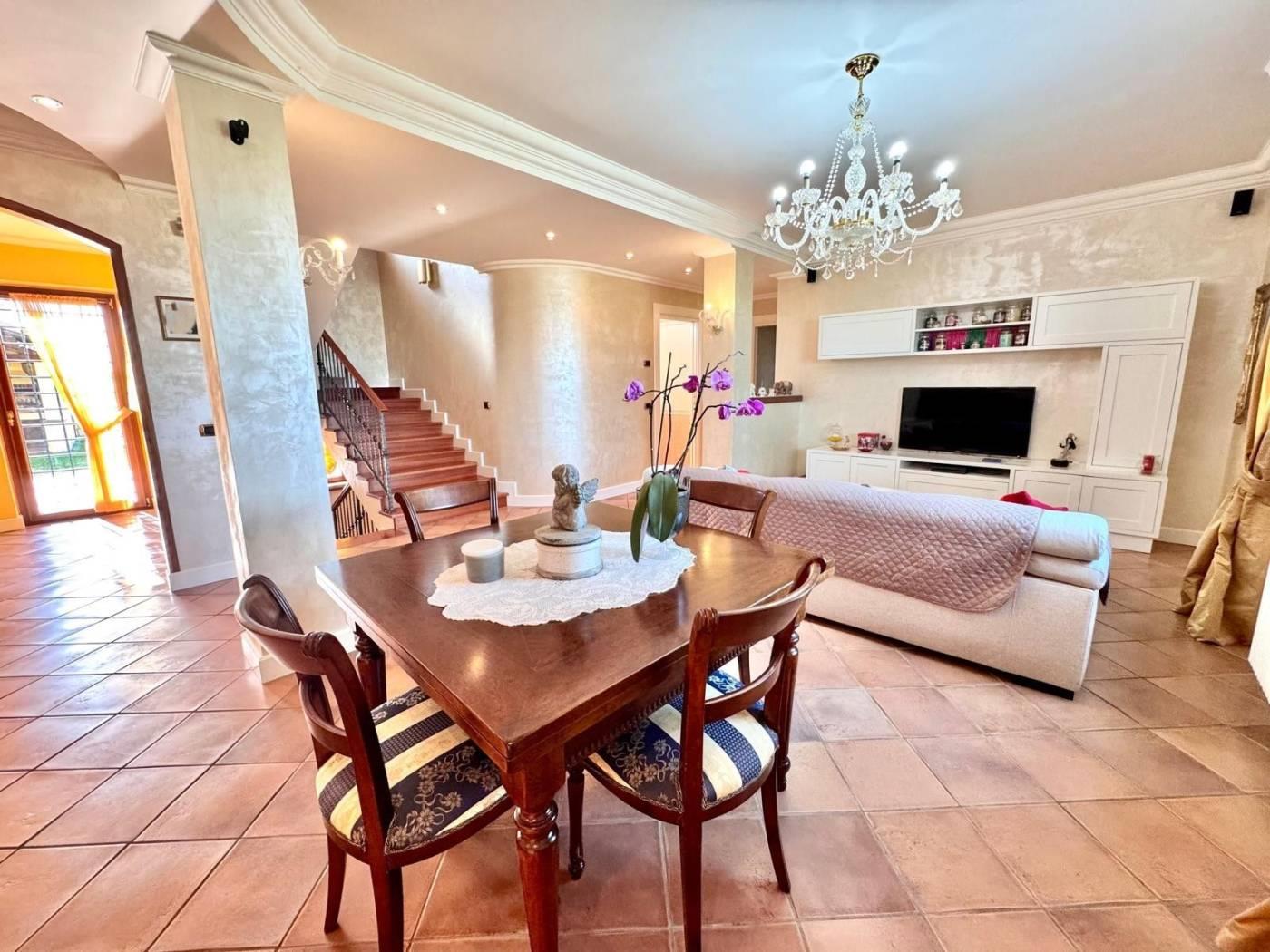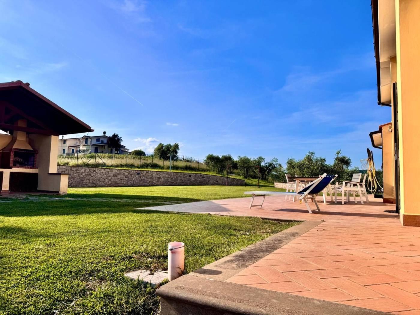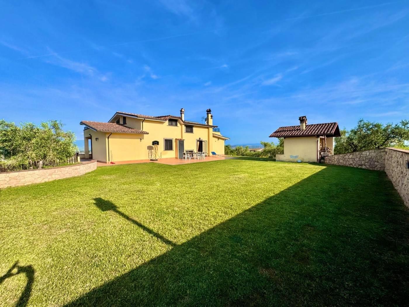 Fiano Romano, e più precisamente in Via del Sassone, in posizione dominante e panoramica, disponiamo di un'esclusiva VILLA UNIFAMILIARE circondata da un curatissimo giardino di mq 1000 oltre all'uliveto di mq 10.000 che vanta ben 200 piante. La villa si sviluppa su tre piani così ripartiti: al piano terra troviamo il salone doppio, la cucina abitabile con camino, una camera da letto padronale con bagno e cabina armadio ed il secondo bagno; con una comoda scala in legno massello si accede al primo piano dove troviamo quattro camere, un bagno e due terrazzi e al piano seminterrato, dove c'è una sala hobby di mq 120 con angolo cottura, camino, lavanderia e bagno. Dalla sala hobby si accede al box di mq 100 che ospita comodamente 4 macchine. La villa è facilmente divisibile per due unità familiari avendo il piano seminterrato tutti gli impianti autonomi ed indipendenti. L'immobile è stato realizzato nel 2010 con pannelli solari con boiler di accumulo, termocamino per il funzionamento dei termosifoni oltre all'impianto autonomo con caldaia, finestre doppio vetro legno/alluminio, pavimentazione in cotto e parquet da 1,5 cm., allarme con videosorveglianza e sulla parte del giardino fronte cucina/salone c'è una deliziosa casetta con forno a legna e barbecue e retrostante legnaia.
