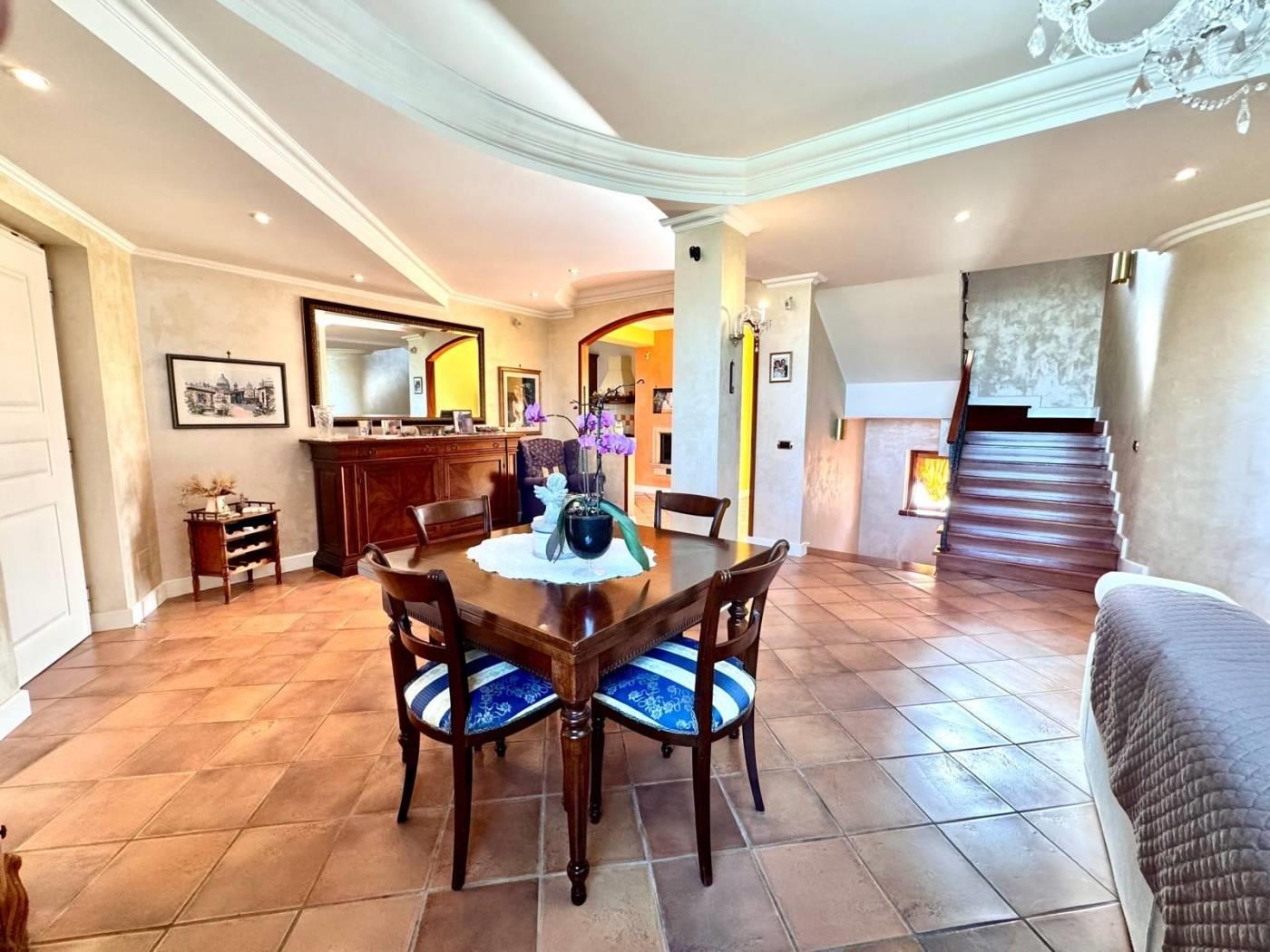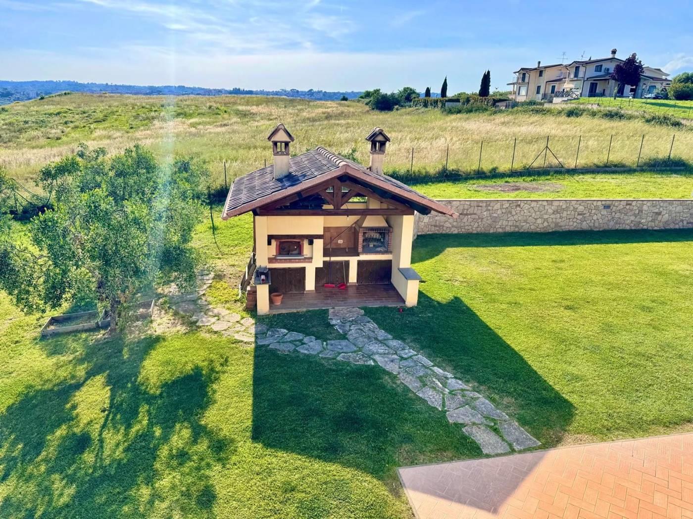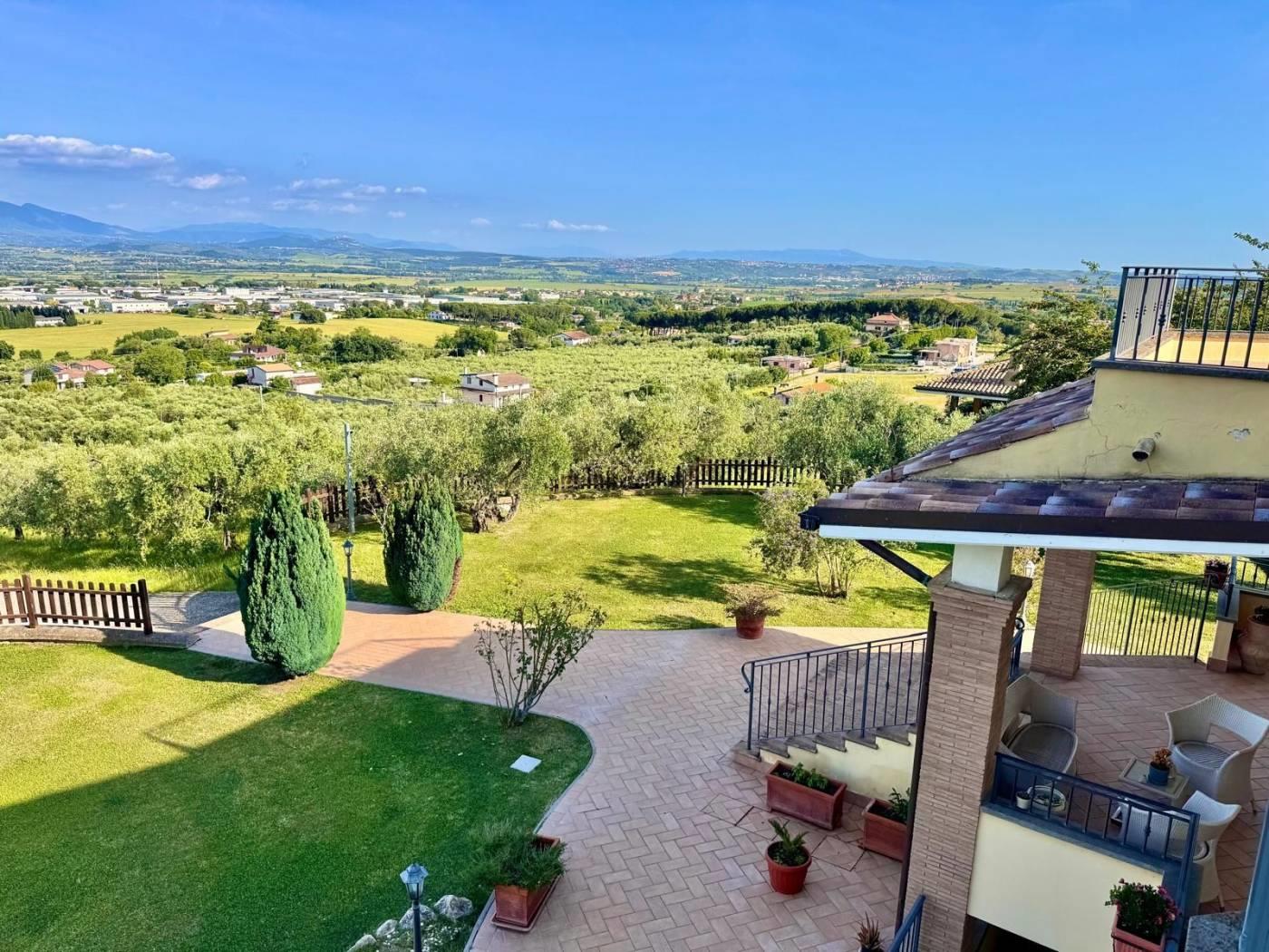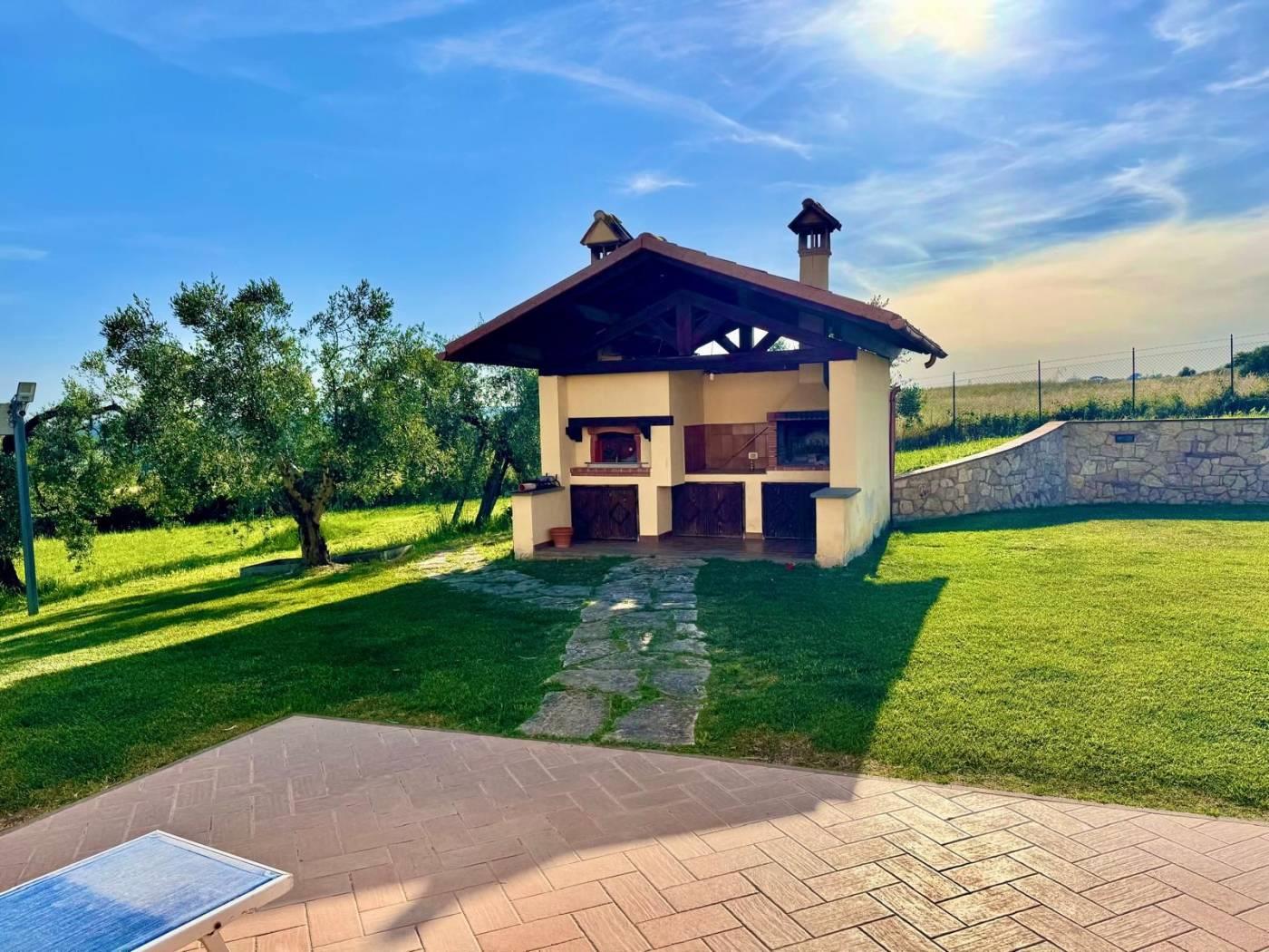 Fiano Romano, e più precisamente in Via del Sassone, in posizione dominante e panoramica, disponiamo di un'esclusiva VILLA UNIFAMILIARE circondata da un curatissimo giardino di mq 1000 oltre all'uliveto di mq 10.000 che vanta ben 200 piante. La villa si sviluppa su tre piani così ripartiti: al piano terra troviamo il salone doppio, la cucina abitabile con camino, una camera da letto padronale con bagno e cabina armadio ed il secondo bagno; con una comoda scala in legno massello si accede al primo piano dove troviamo quattro camere, un bagno e due terrazzi e al piano seminterrato, dove c'è una sala hobby di mq 120 con angolo cottura, camino, lavanderia e bagno. Dalla sala hobby si accede al box di mq 100 che ospita comodamente 4 macchine. La villa è facilmente divisibile per due unità familiari avendo il piano seminterrato tutti gli impianti autonomi ed indipendenti. L'immobile è stato realizzato nel 2010 con pannelli solari con boiler di accumulo, termocamino per il funzionamento dei termosifoni oltre all'impianto autonomo con caldaia, finestre doppio vetro legno/alluminio, pavimentazione in cotto e parquet da 1,5 cm., allarme con videosorveglianza e sulla parte del giardino fronte cucina/salone c'è una deliziosa casetta con forno a legna e barbecue e retrostante legnaia.