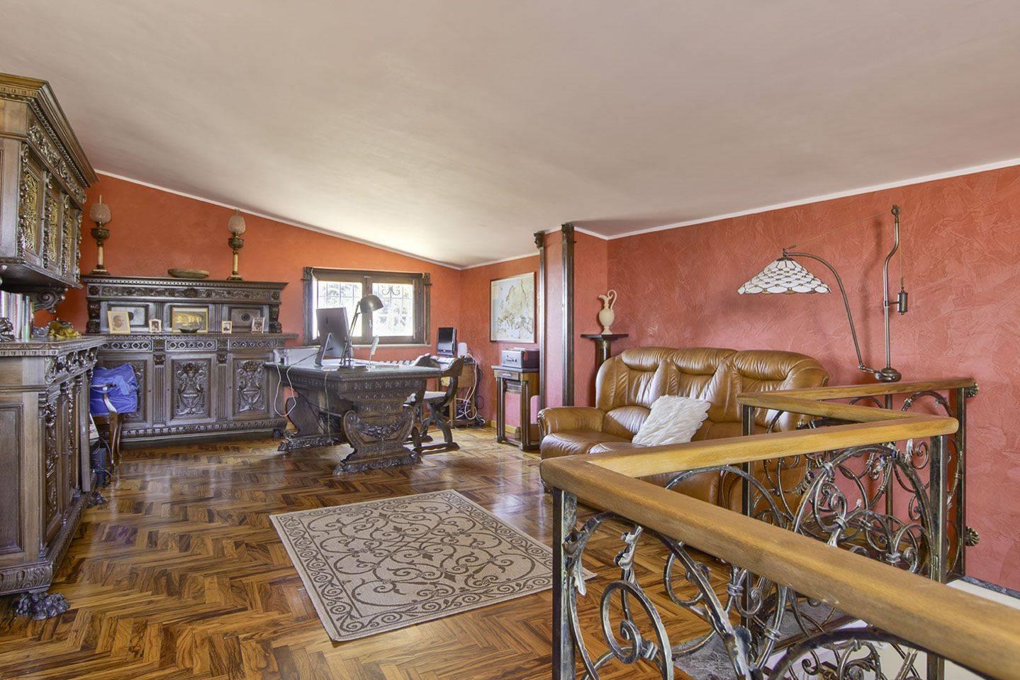 Al piano terra, troverai una grande cucina, una sala da pranzo accogliente, una zona lavanderia, ripostiglio e due bagni, oltre a un'enorme sala hobby perfetta per il relax o per ospitare amici. Il primo piano offre tre camere da letto luminose e due bagni, accompagnati da un salone con camino, ideale per le serate invernali. L'ultimo piano è dedicato a uno studio con terrazza, perfetto per lavorare in un ambiente sereno.