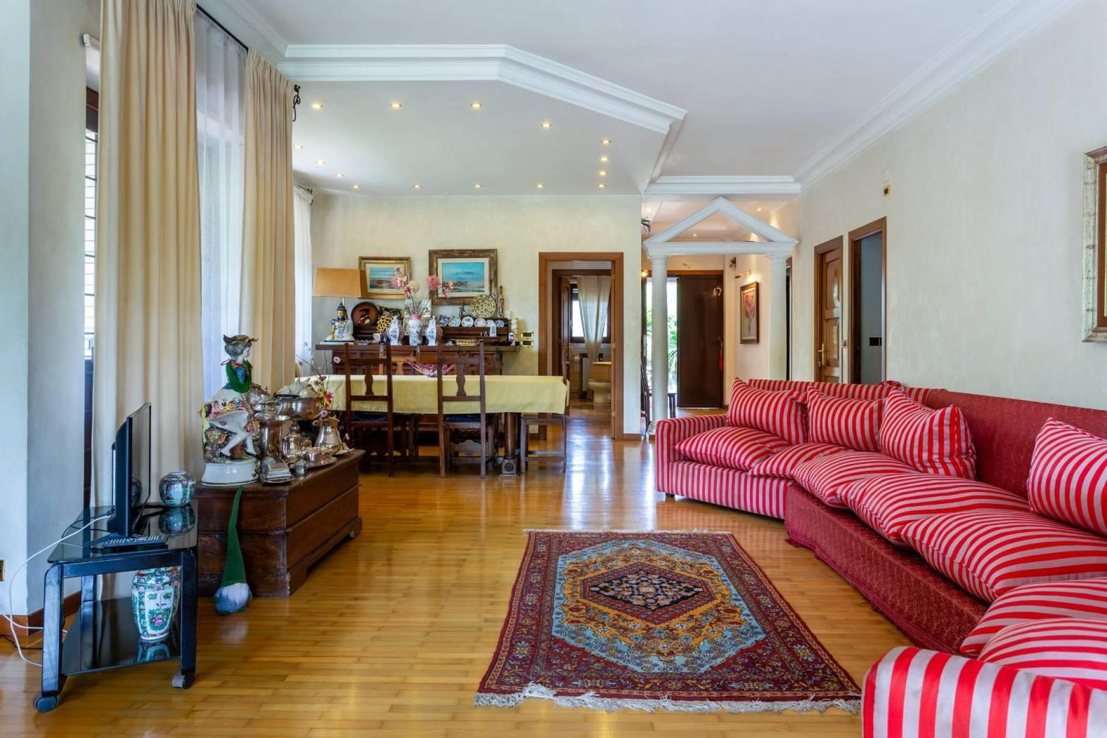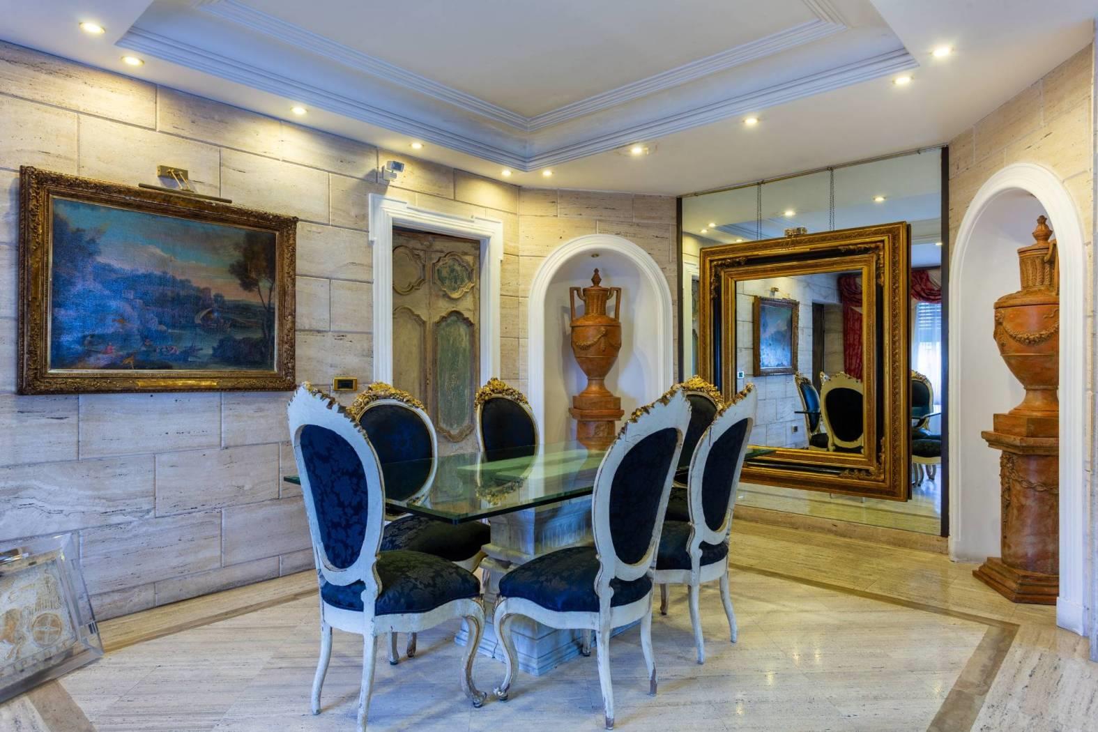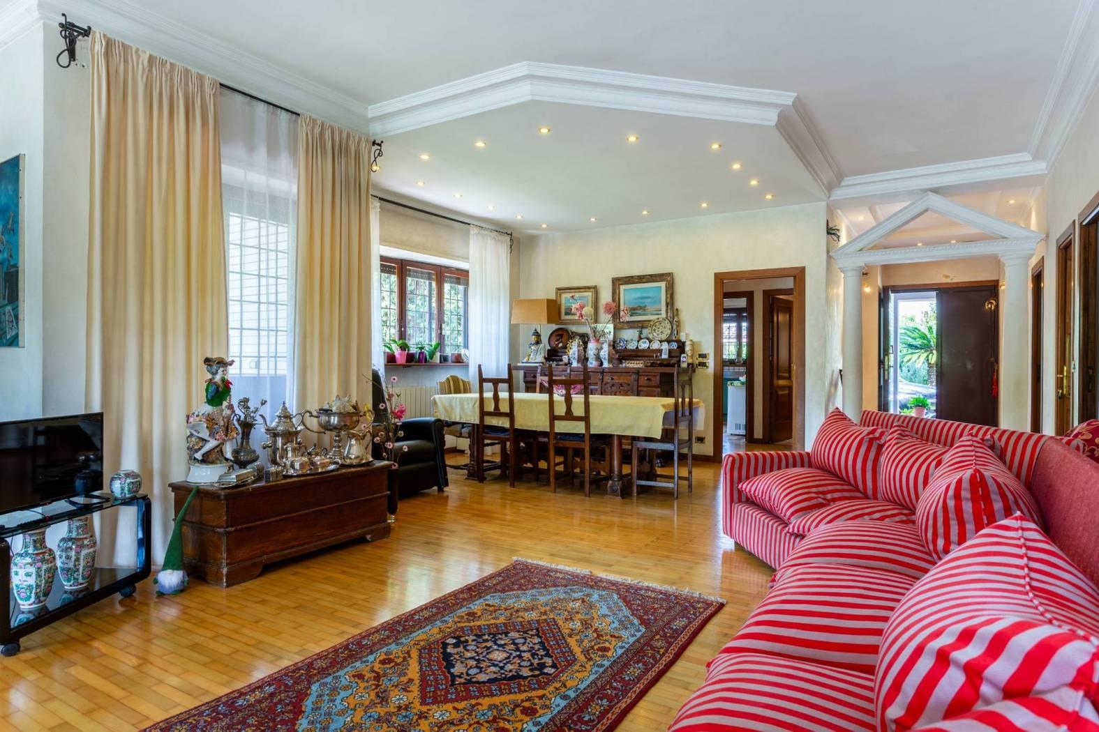 Eur, Villaggio Azzurro, in una delle strade più esclusive e riservate del quartiere, proponiamo in vendita una prestigiosa villa in cortina su tre livelli. La proprietà è circondata da circa 1.000 mq di spazi esterni tra giardino e terrazzi, arricchiti da una raffinata piscina rivestita in mosaico, ideale per momenti di relax in totale privacy.