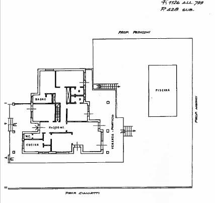 L’abitazione principale si sviluppa al piano terra con un ampio salone di rappresentanza con camino, affacciato sul verde e sulla piscina, una cucina abitabile, un bagno di servizio e una zona notte composta da una camera matrimoniale ed altre tre camere matrimoniali con bagno privato annesso.