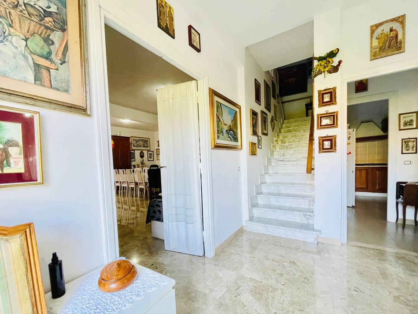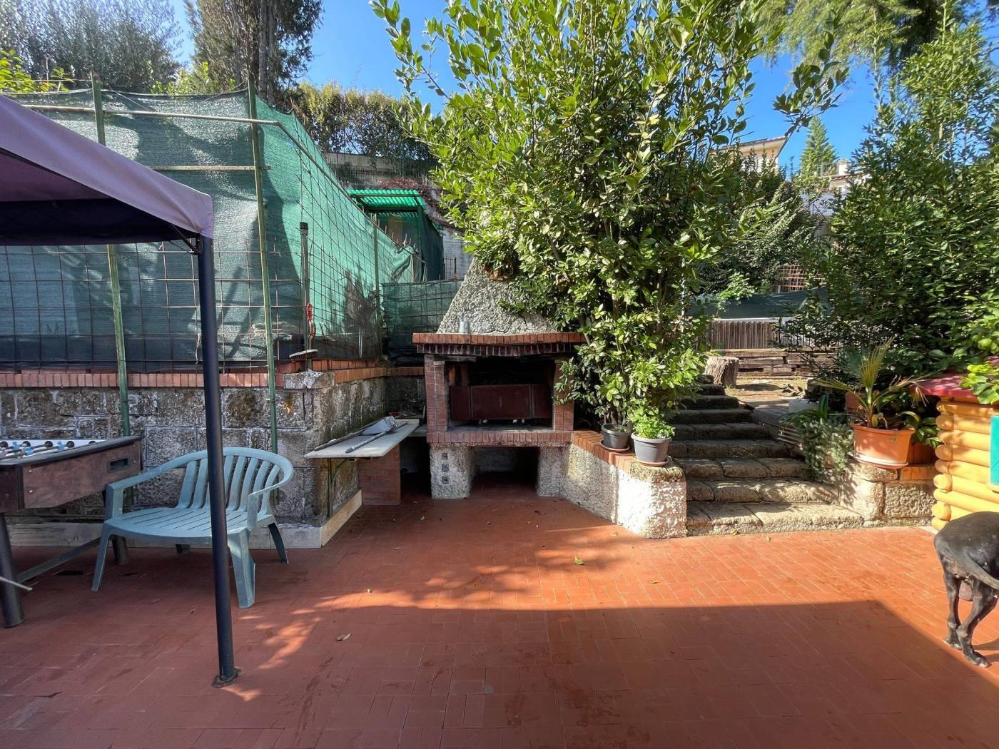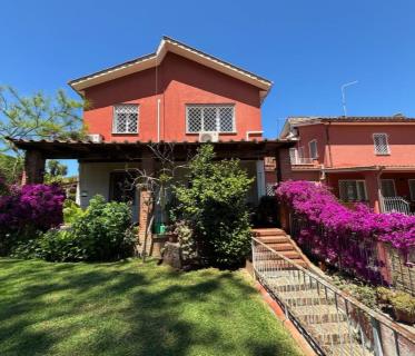 Toscano propone la vendita di una villa quadrifamiliare nel cuore del quartiere residenziale Villaggio Azzurro. La villa si sviluppa su tre livelli ed è circondata da un giardino perimetrale, uno dei più ampi della zona. Al piano di mezzo troviamo ingresso, un ampio salone con camino, una camera, un servizio e la cucina abitabile con una veranda dalla quale si accede al giardino. Al piano superiore ci sono quattro camere da letto, una delle quali ha l'accesso al terrazzo, due servizi e la possibilità di accedere alla soffitta. Nel seminterrato abbiamo la sala hobby, dalla quale si ha l'accesso diretto al box auto, cantina e locale caldaia, composta da una camera matrimoniale e un servizio. Posizione ottimale in quanto a ridosso di tutti i servizi di prima necessità situati nella vicina piazza Piermarini dove troviamo anche il capolinea del bus, ed in prossimità delle principali arterie stradali. CONTATTACI PER VISIONARE L'IMMOBILE 065071220 RIF. 51/25