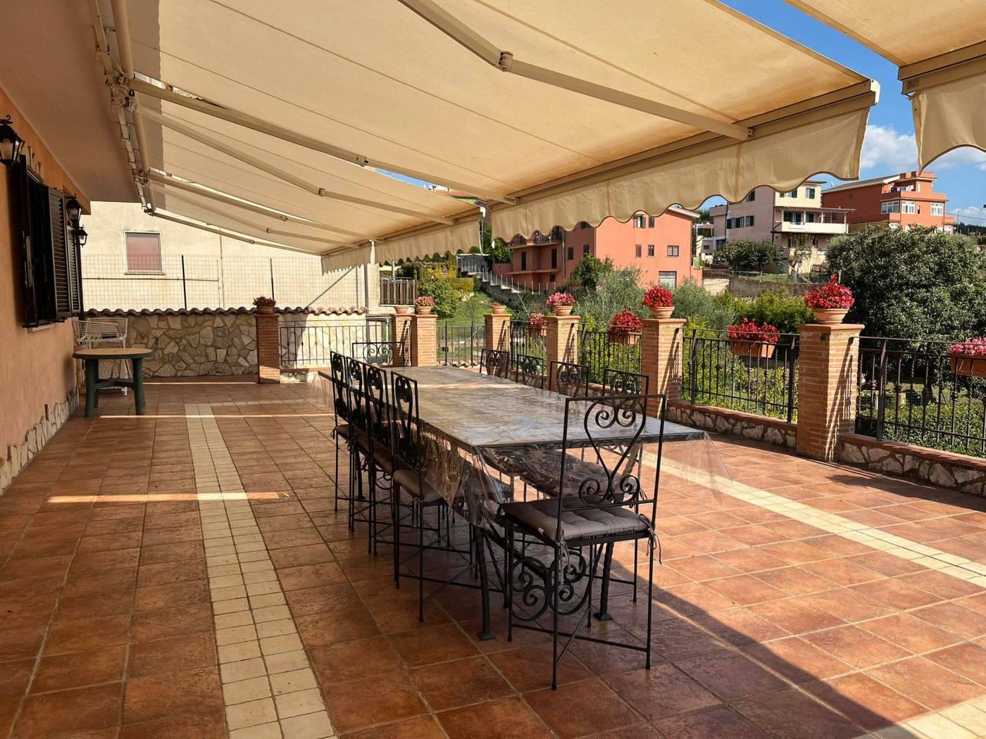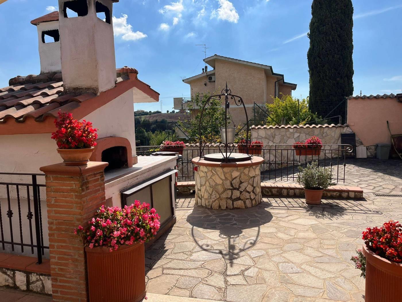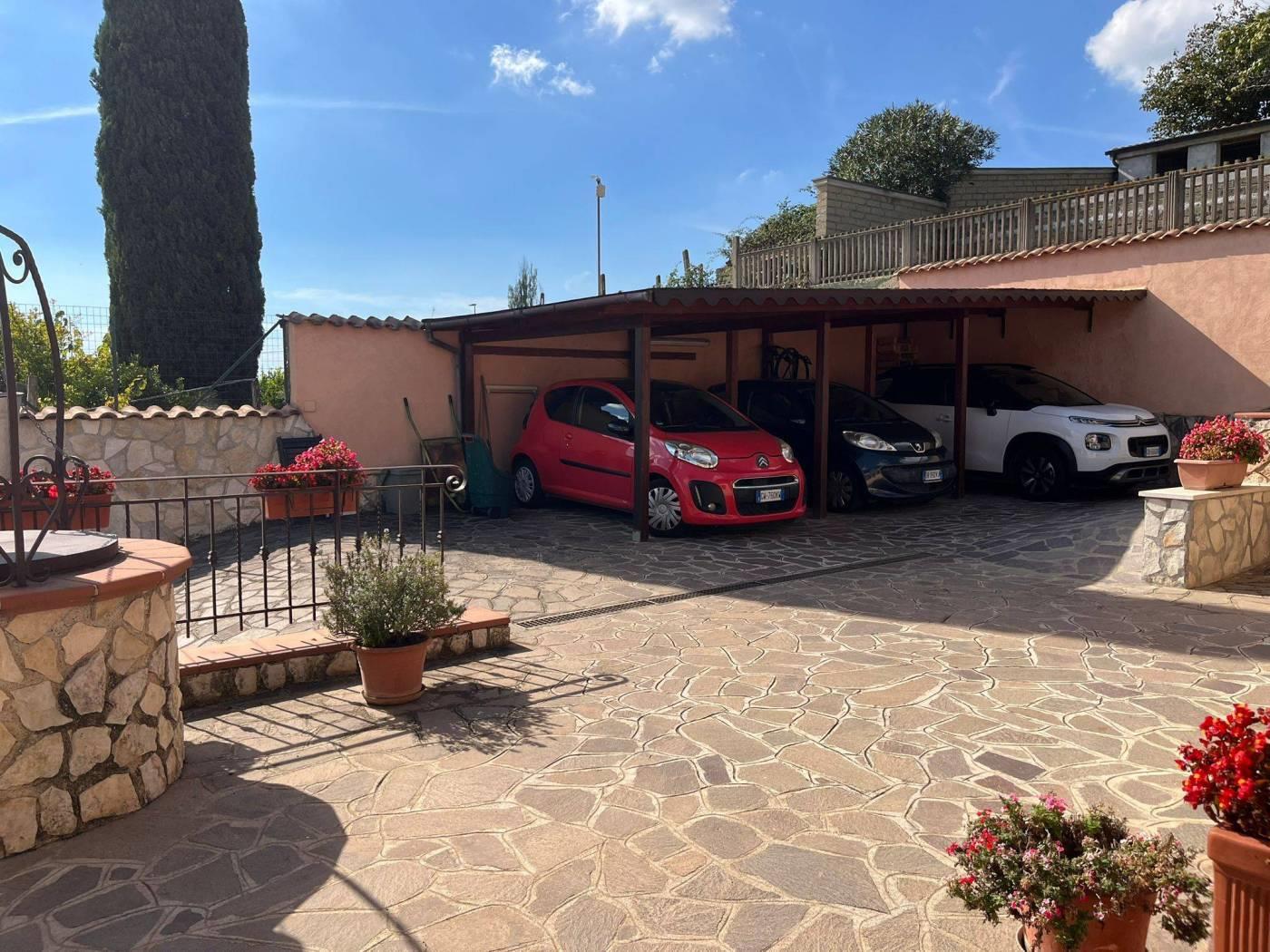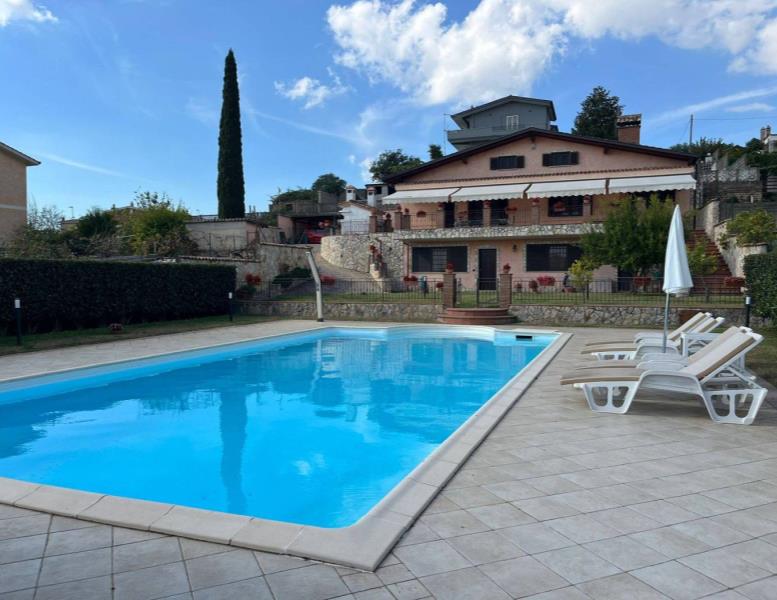 COLLE DEI PINI: In contesto riservato ma adiacente ai principali collegamenti proponiamo la vendita di una villa unifamiliare su tre livelli fuori terra stile casale di recente costruzione divisibile con doppio ingresso . L'immobile è di ampia metratura ed è composto al piano rialzato da un soggiorno con cucina a vista, due camere matrimoniali, un servizio ed un' ampia dispensa. Al piano primo da due camere mansardate ed un servizio. Al piano terra che ha anche un ingresso indipendente troviamo una grande sala hobby con termo camino, forno a legna, cucina a vista ed un servizio. Completano la proprietà una grande e conviviale terrazza abitabile da 80 mq circa con affaccio sulla proprietà esterna della dimensione di 1.000mq circa con piscina e tre posti auto coperti. L' immobile è dotato di un impianto fotovoltaico da 4,5 kw per la produzione di elettricità con incentivi fino al 2033, oltre la predisposizione per i pannelli solari. E' dotato inoltre della predisposizione per i condizionatori nelle camere, caldaia a condensazione, finestre con doppi vetri ,inferiate in ferro con serrature e zanzariere su tutti gli infissi, allarme perimetrale interno ed esterno con radar interni suddivisi per piani, pozzo per l' irrigazione , tende elettriche esterne e videocitofoni.