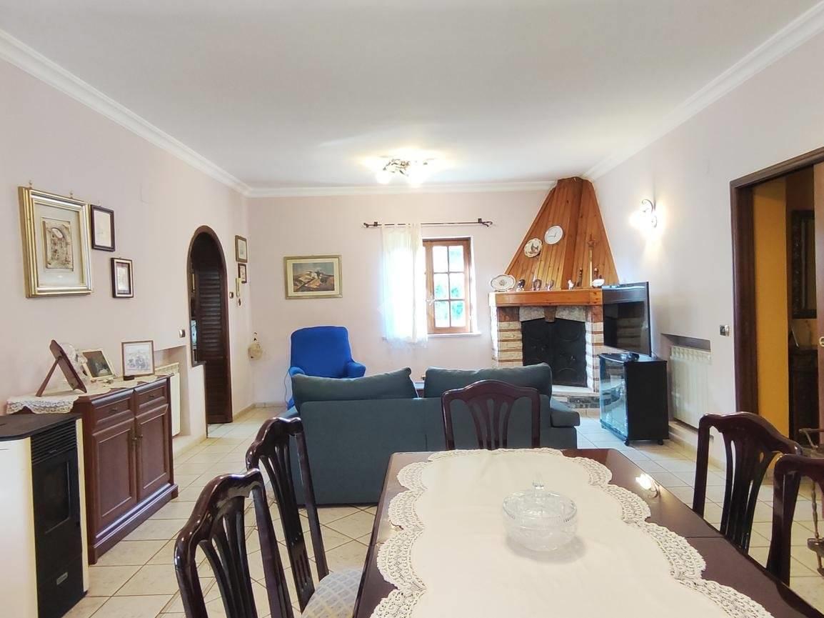 La zona giorno è composta da un ampio salone dotato di termo-camino, ideale per creare un’atmosfera calda e conviviale, e da una cucina funzionale.