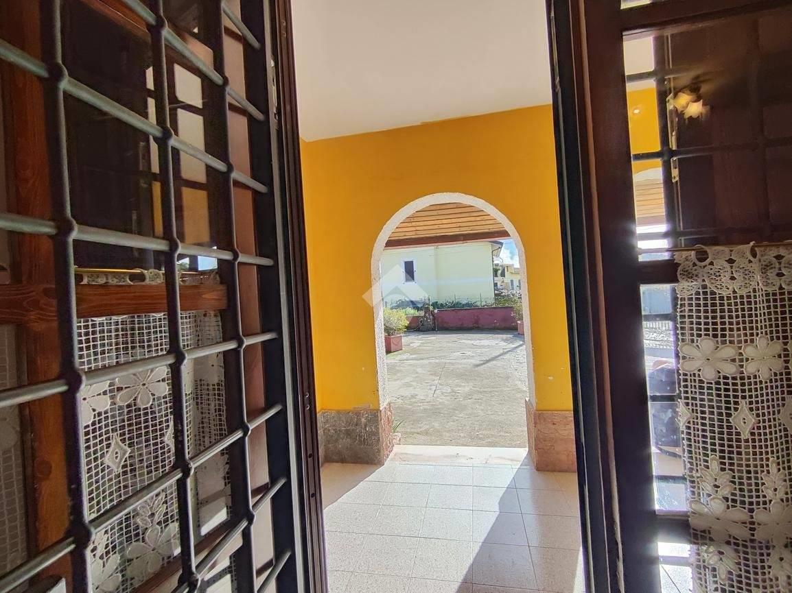 Un accogliente portico introduce all’interno della casa, dove gli ambienti sono ben distribuiti e luminosi.