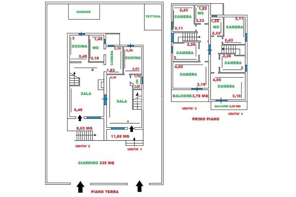 La seconda porzione abitativa, anch’essa ha un ingresso indipendente e si sviluppa su due livelli. Al piano terra troviamo un ampio salone accogliente, una cucina funzionale e ben organizzata, una camera da letto e un bagno di servizio. Salendo al piano superiore troviamo una zona notte ben separata composta da due camere matrimoniali, di cui una con balcone, una cameretta, e un bagno finestrato con doccia; completa questa unità un comodo garage.