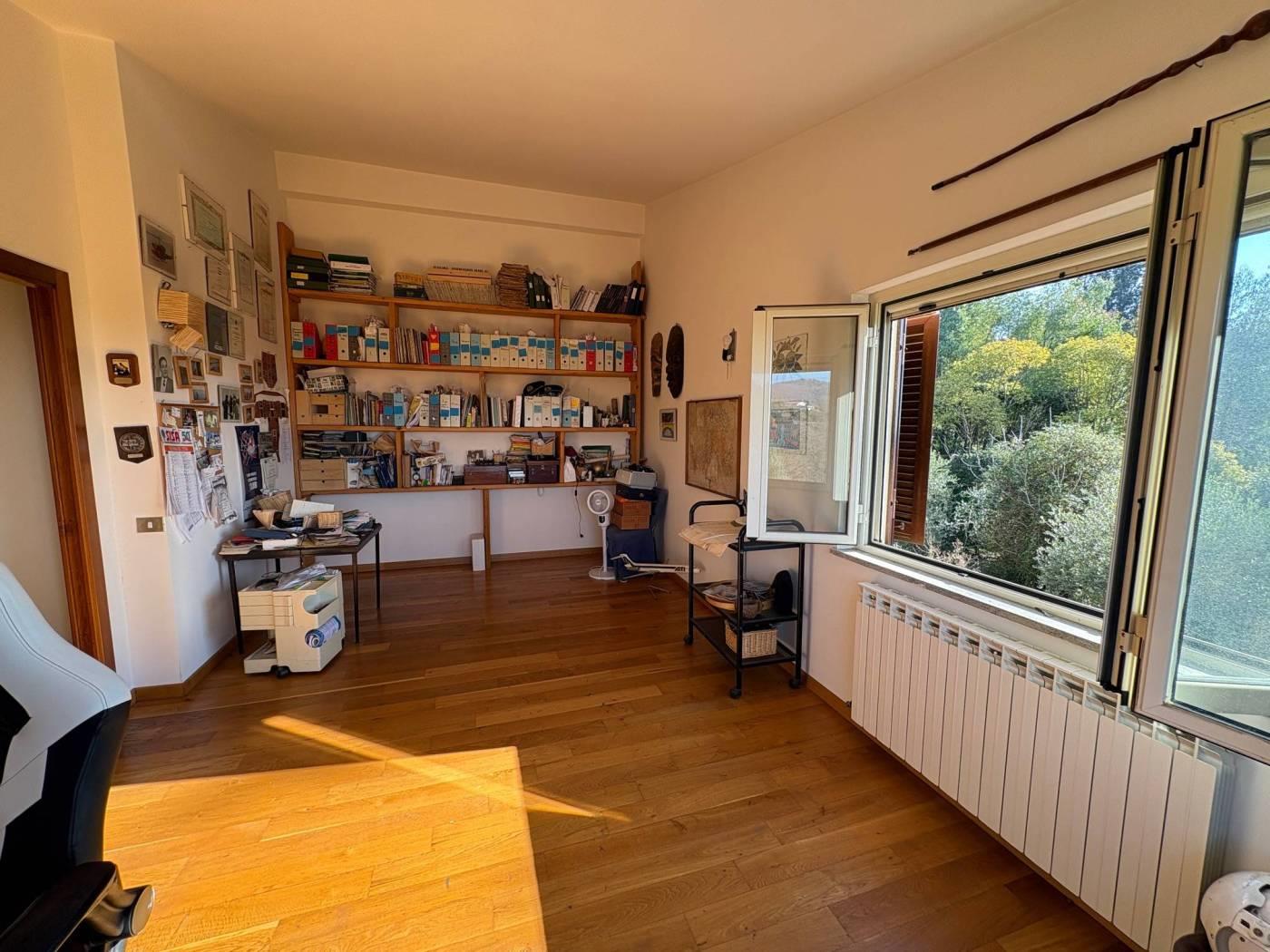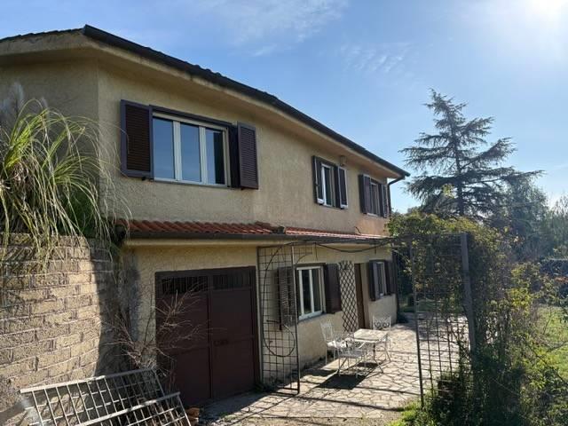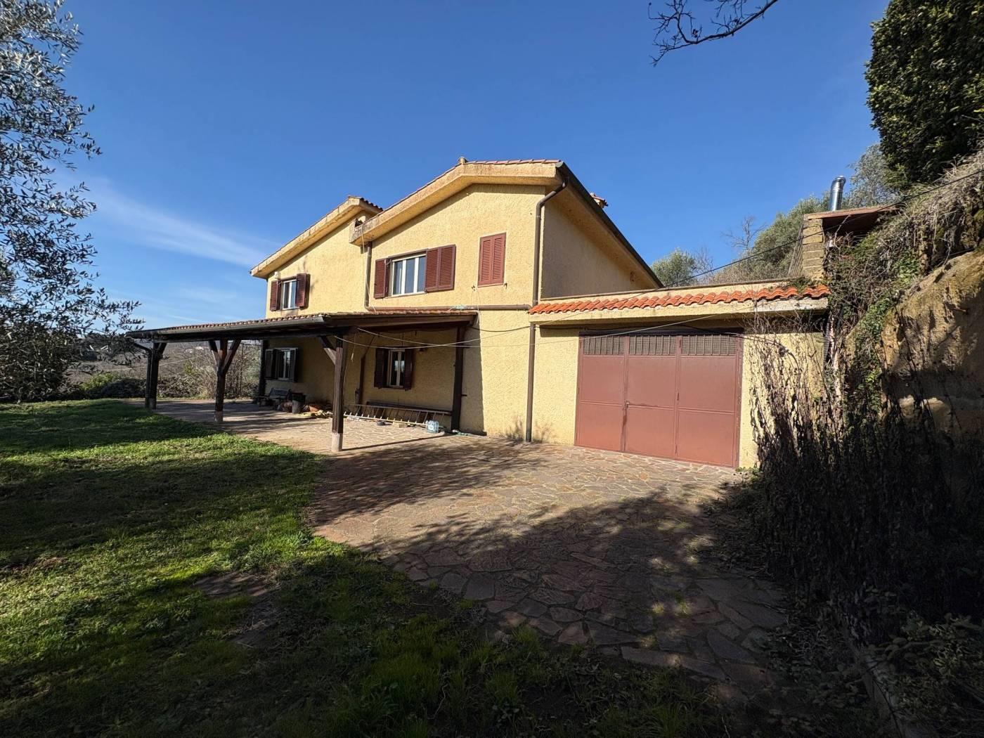 Villa unifamiliare, situata a 3 km dalla strada provinciale, disposta su due livelli, ognuno con ingresso indipendente e giardino a livello, ma comunicanti tra di loro con scala interna. Si accede alla proprietà attraverso un cancello automatico, in posizione collinare, alta e panoramica, con esposizione a sud-ovest e insiste su un terreno di 13.000 mq. circa con uliveto e alberi da frutto. Il riscaldamento è autonomo con impianto a GPL.