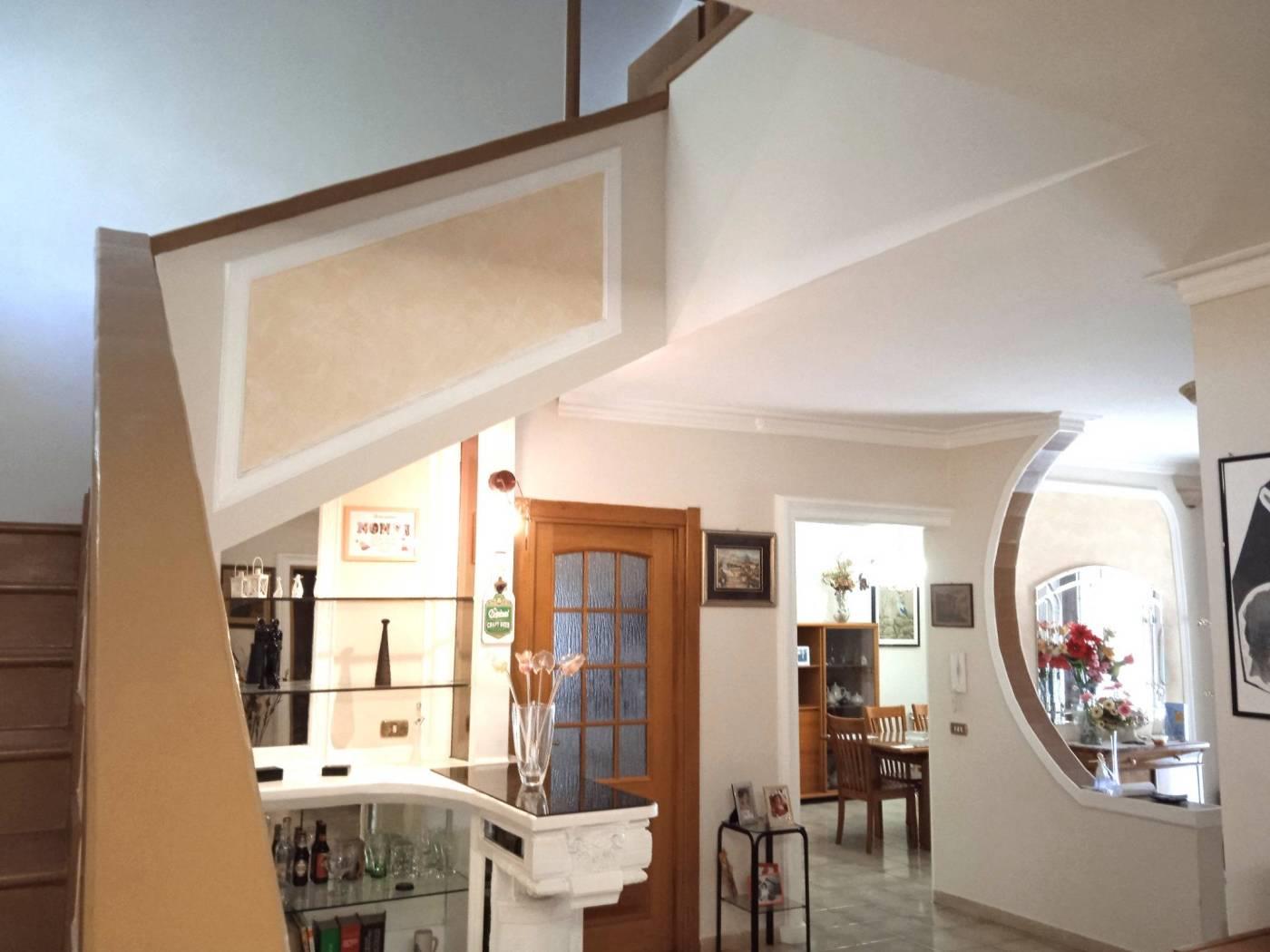 L'immobile ottimamente esposto, è articolato su 2 livelli e dispone di accessi indipendenti (pedonale e carrabile) che affacciano direttamente sul fronte stradale e presenta un'area esterna che gira intorno alla villa di 400 mq ca., di cui una parte dedicata a giardino ed una parte ad area di parcheggio. La Villa internamente è composta al Piano Terra da: ingresso, un'ampia zona living che accoglie un salone doppio con camino, una sala da pranzo, una cucina abitabile, disimpegno, una camera da letto, un bagno con finestra e ripostiglio. Dalla zona pranzo si accede all'ampio portico con area relax ed al giardino con piante ad alto fusto ed ornamentali, nel quale è presente una deliziosa area barbecue. Una comoda scala porta al Piano Superiore, dove troviamo un ballatoio con parapetto che affaccia sull'ampia zona living, che conduce alla zona notte composta da 3 camere da letto, un bagno con finestra ed un ripostiglio.