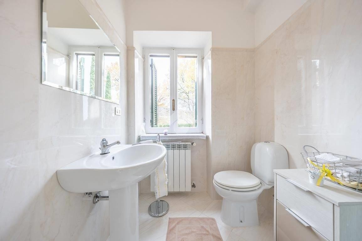Il piano superiore ospita la zona notte padronale, composta da tre camere matrimoniali di ampia metratura e due bagni finestrati. Da ogni ambiente si gode una vista panoramica mozzafiato su Roma, che rende questo piano particolarmente esclusivo.