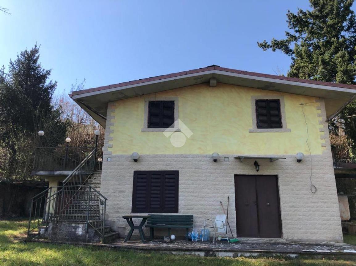 Olevano Romano: Immersa nel verde e nel silenzio della natura, casa indipendente sviluppata su due livelli collegati da una scala esterna. Piano Terra composto da: salone, cucina e bagno. Piano Primo disimpegno, quattro camere, bagno e ripostiglio. L'immobile è circondato da un terreno pianeggiante di 8.000 mq con doppio accesso. Completa la proprietà un locale cantina di 60 mq e un forno a legna esterno con gazebo.