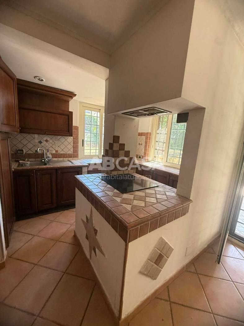 La cucina a vista in muratura, con piano cottura a induzione, è perfetta per gli amanti della cucina.