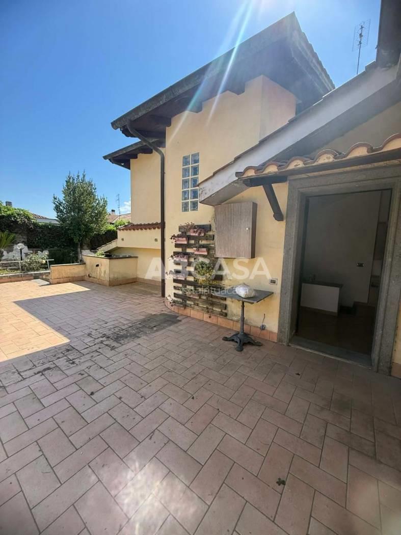 Il giardino di circa 500 mq, parzialmente pavimentato, è un vero e proprio rifugio verde dove rilassarsi e organizzare cene all'aperto. Grazie all'aria condizionata, all'impianto fotovoltaico da 3 kW e alla pompa di calore per la produzione di acqua calda, questa villa è anche un esempio di efficienza energetica.