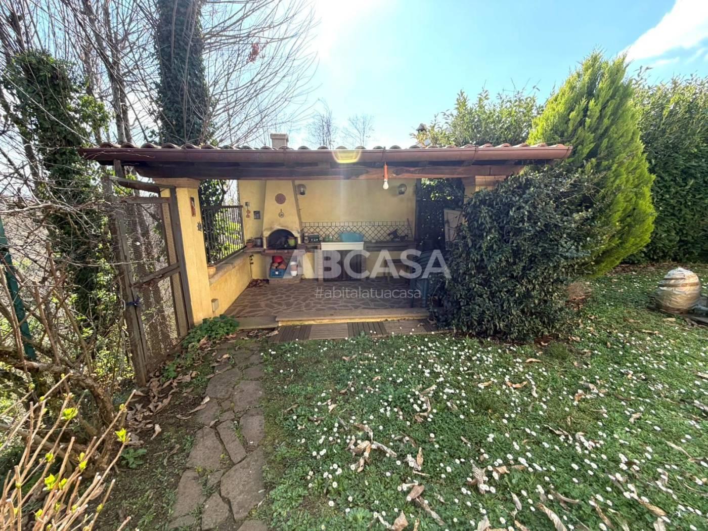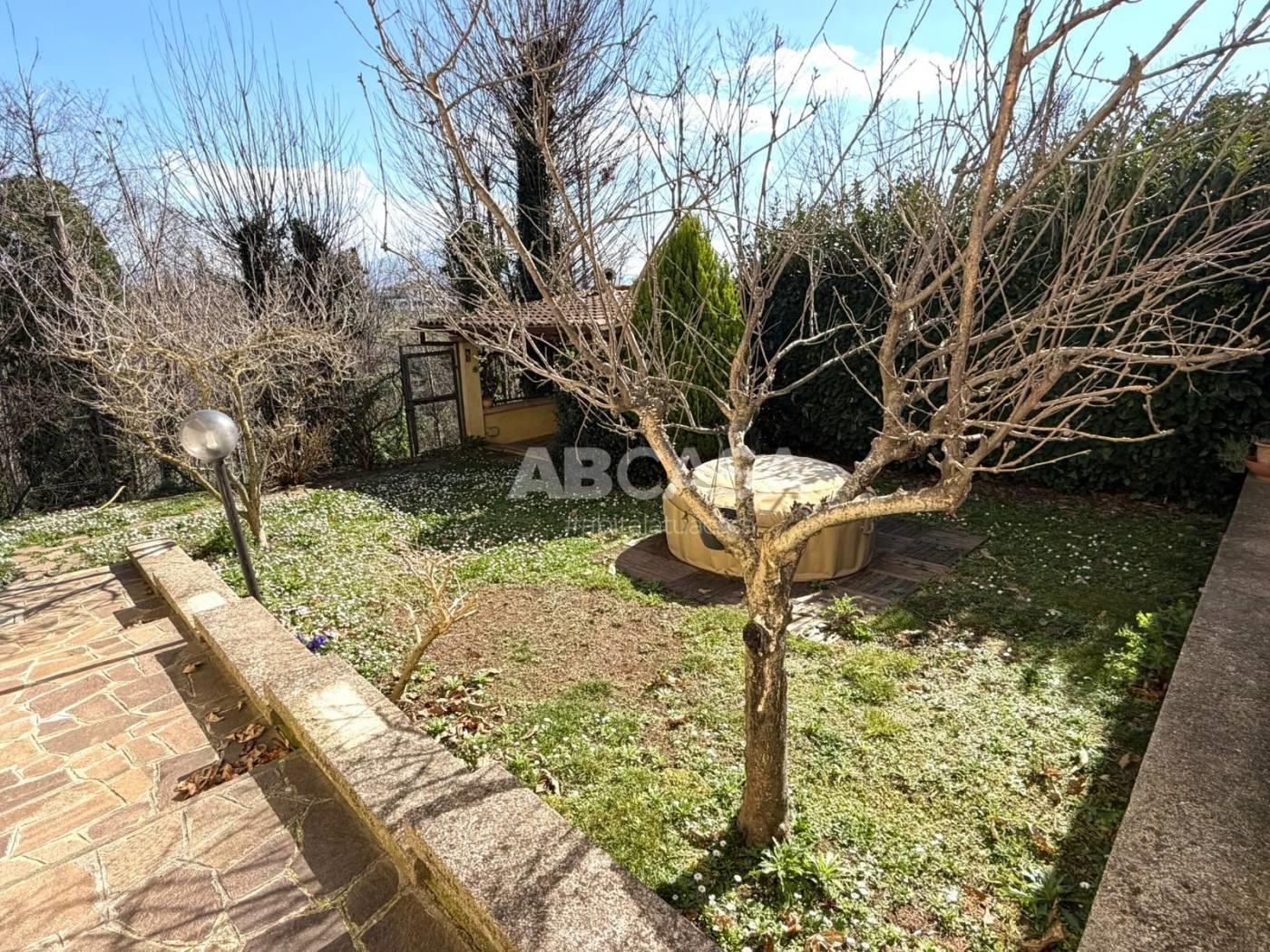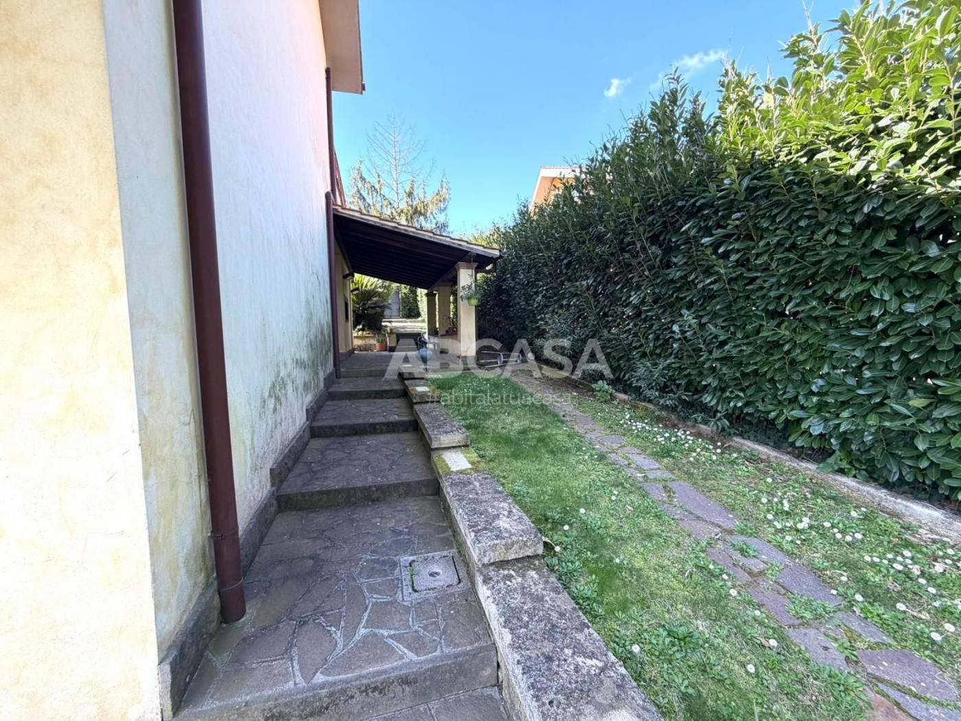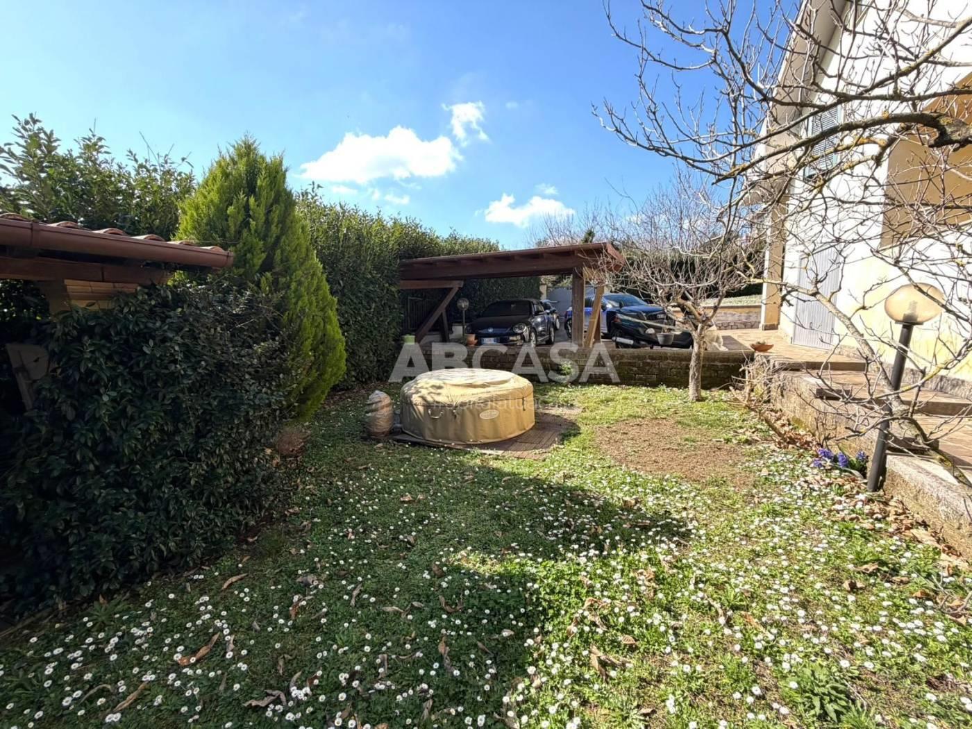 La proprietà dispone inoltre di un comodo garage, dove si può accedere direttamente dall'interno della casa, un giardino di 1.000 mq completamente recintato con un barbecue esterno e cancello automatico.