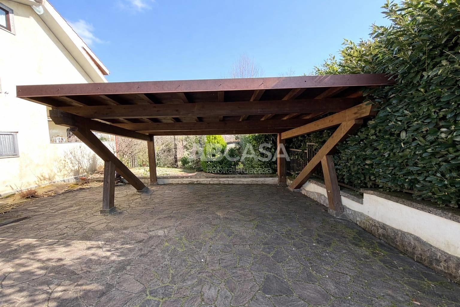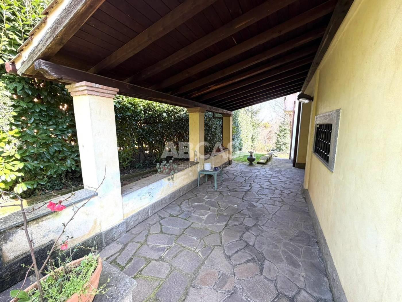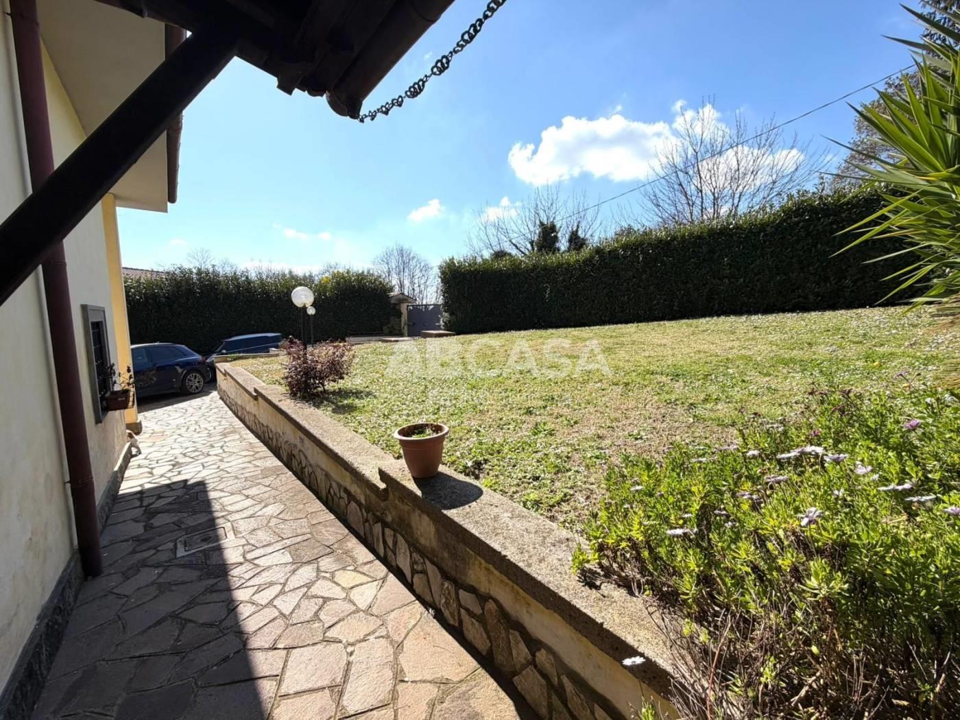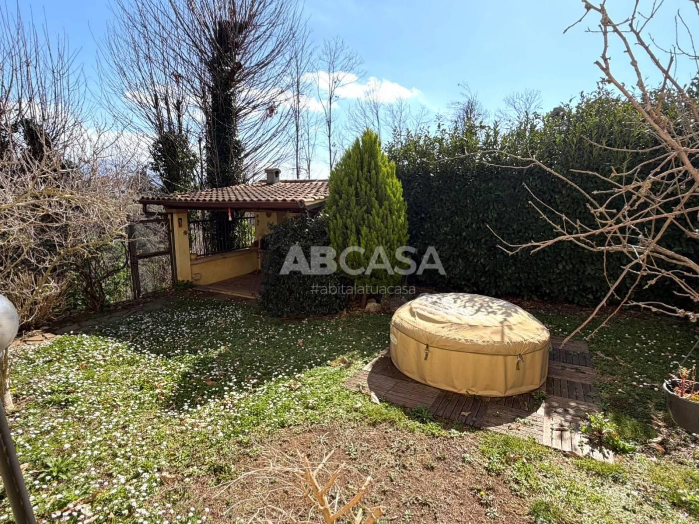 La proprietà dispone inoltre di un comodo garage, dove si può accedere direttamente dall'interno della casa, un giardino di 1.000 mq completamente recintato con un barbecue esterno e cancello automatico.