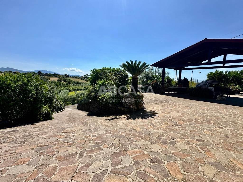 Salendo al piano superiore, un ampio ingresso conduce a cinque camere da letto, due delle quali vantano accesso diretto al balcone, ideale per godere della vista mozzafiato. Un grande bagno con vasca offre ulteriore comfort. La villa è immersa in un terreno di quasi un ettaro, completamente recintato e dotato di cancello elettrico per garantire la massima privacy.