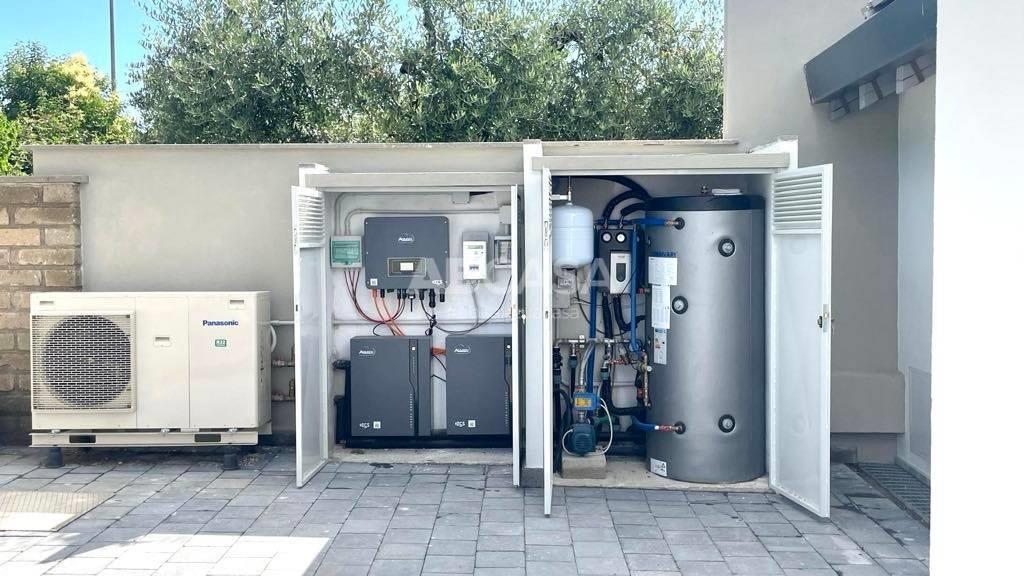 L'impianto fotovoltaico di 7.3 Kw, con relativo inverter e batterie d'accumulo, il solare termico per la produzione di acqua calda sanitaria, l'impianto radiante a pavimento e la colonnina per la ricarica di auto elettriche, rendono l'immobile completamente autosufficiente.