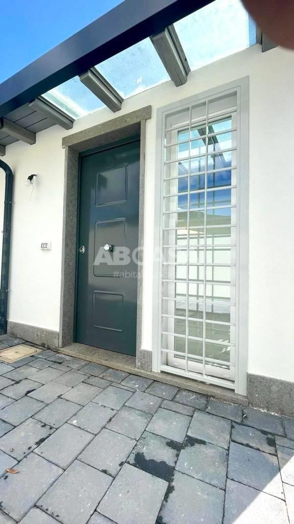L'esterno di circa 350 mq, si sviluppa in parte con piazzali pavimentati e il resto con giardino attrezzato già dotato di impianto di irrigazione automatico.