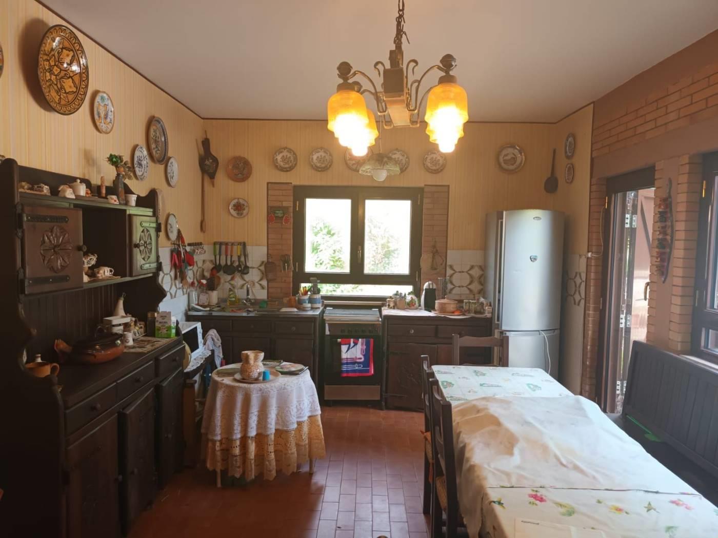 Al piano principale, un ampio salone con camino accoglie gli ospiti, affiancato da una cucina funzionale e due camere matrimoniali. Completano il piano due bagni e un balcone che offre una vista rilassante sul giardino circostante.