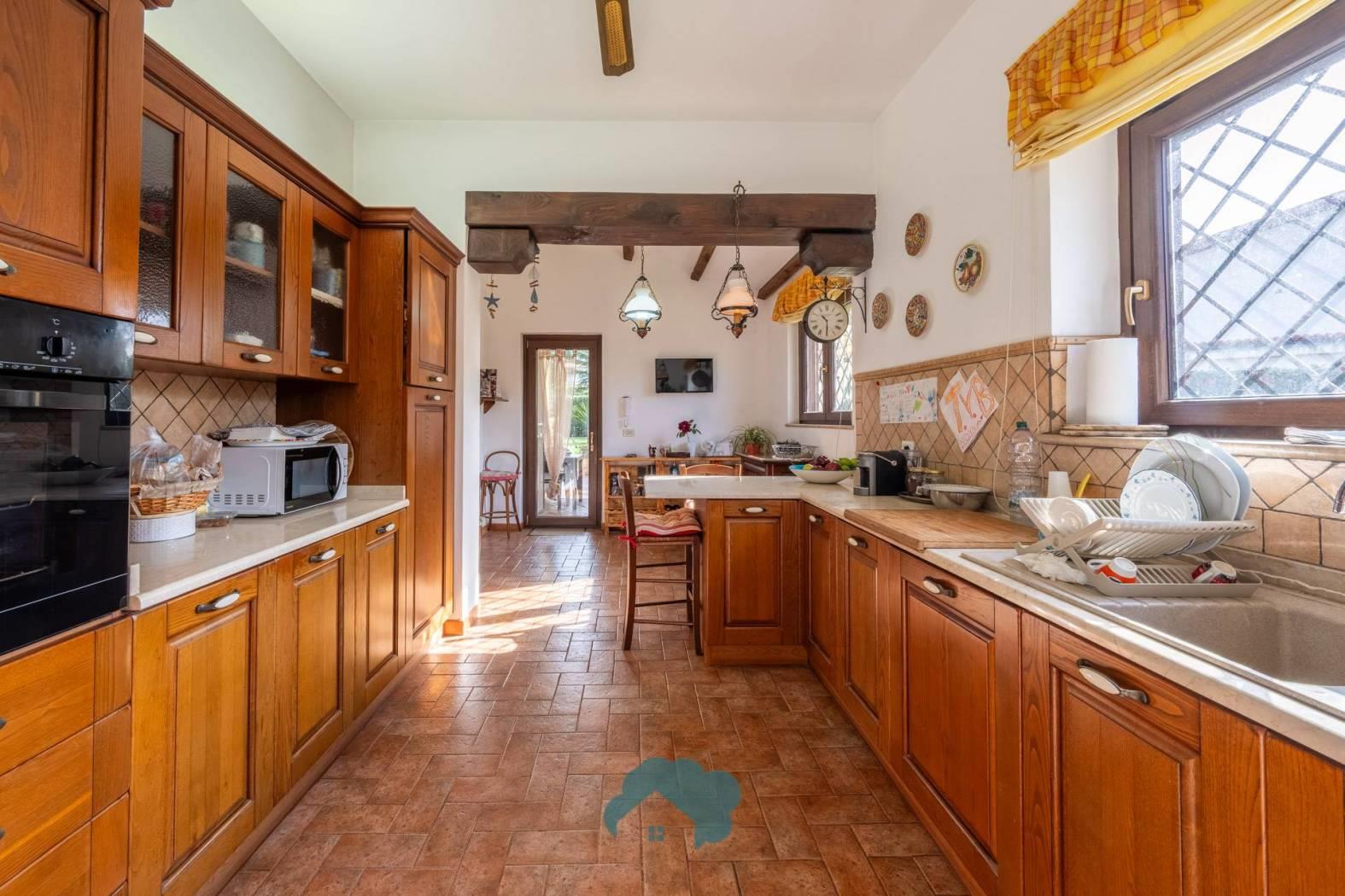 Le caratteristiche dell'immobile sono le seguenti: infissi in pvc effetto legno con doppio vetro a taglio termico con apertura a vasistas, persiane in ferro blindate, pavimentazione in gress e in cotto, aria condizionata caldo/freddo, antifurto con telecamere di videosorveglianza, porta blindata, prediposizione camino, grate, tende da sole, pergotenda con apertura tetto automatica, due cancelli carrabili elettrici, caldaia a pellet e caldaia a gas, stufa a pellet, pozzo di 70mt, irrigazione automatica del giardino ed illuminazione esterna sul viale e giardino.